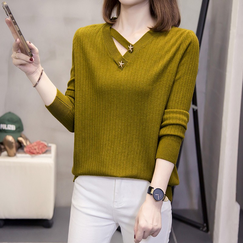 加肥加大码V领毛衣女士秋冬新款洋气设计感针织打底衫内搭上衣女