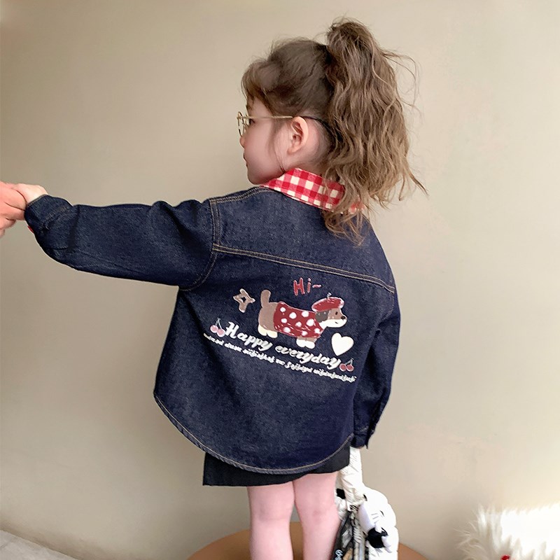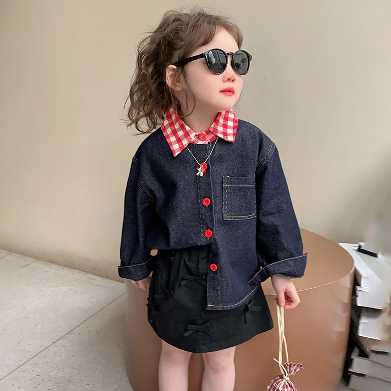 女童牛仔衬衫外套春秋款2025新款洋气时髦春装女宝宝衬衣儿童上衣