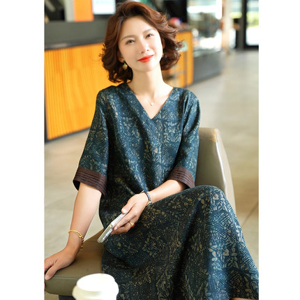 中年女装香云纱真丝连衣裙2025夏季新款妈妈桑蚕丝高端大牌裙子女