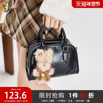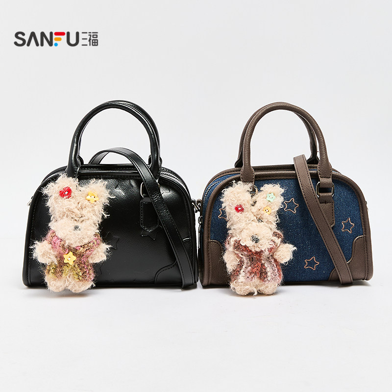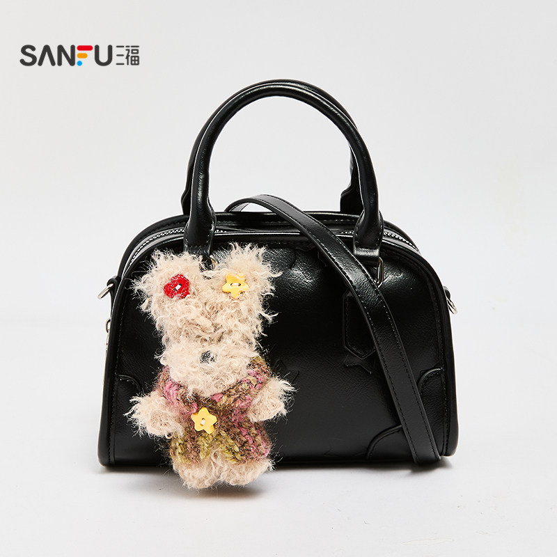 三福手提包冬季学院巴恩星星图案小狗挂件波士顿包女包510929
