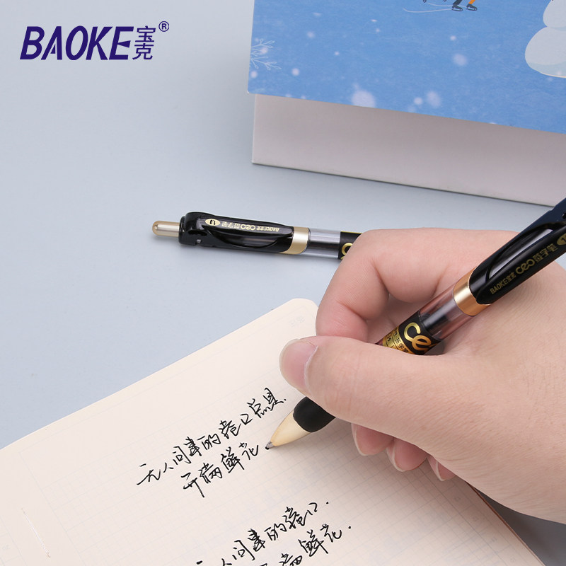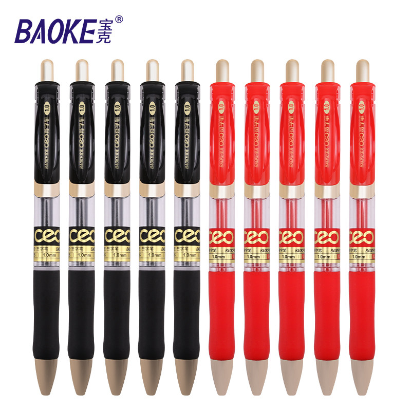宝克按动中性笔1.0mm加粗黑色签字笔练字专用水笔学生用粗头硬笔书法笔教师商务办公签名红笔碳素笔支持定制