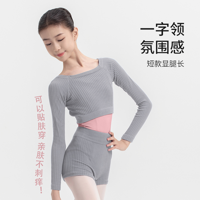众爱舞苑芭蕾舞蹈练功服针织长袖上衣护肩毛衣秋冬儿童形体保暖服