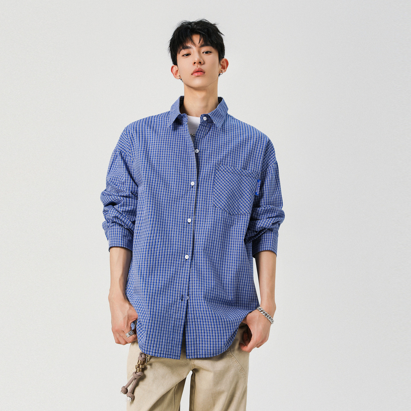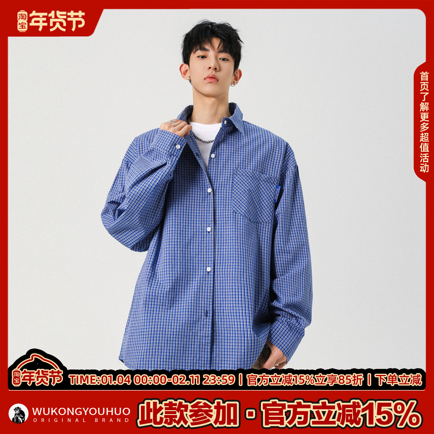 悟空有货秋季潮牌格子cleanfit长袖衬衫男女复古宽松情侣百搭衬衣