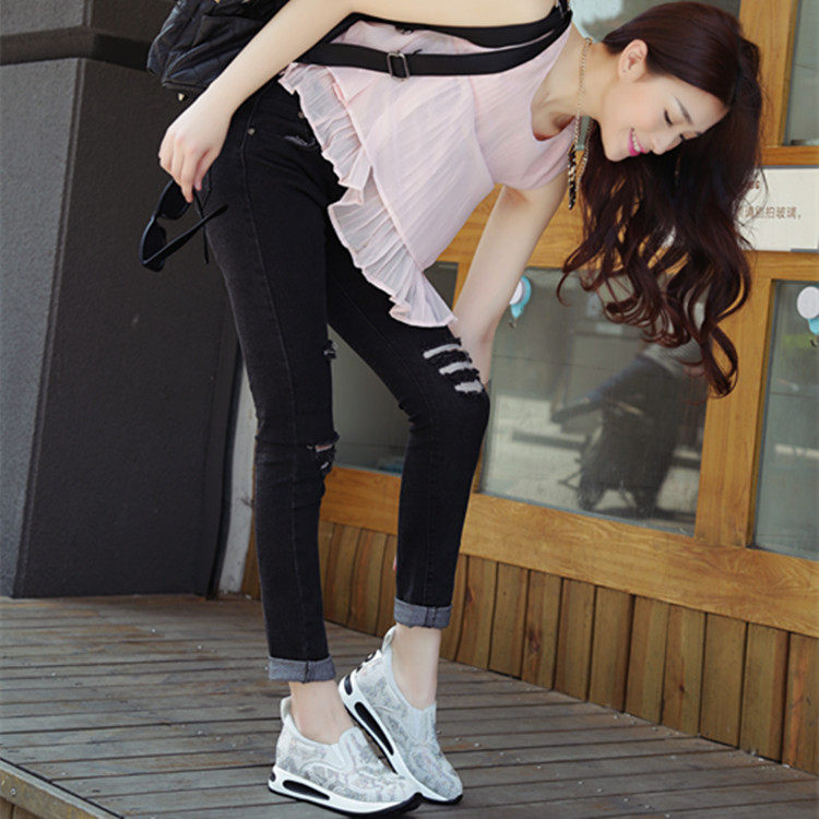 2025秋季新款厚底女鞋透气水钻单鞋内增高套脚韩版低帮鞋休闲鞋女