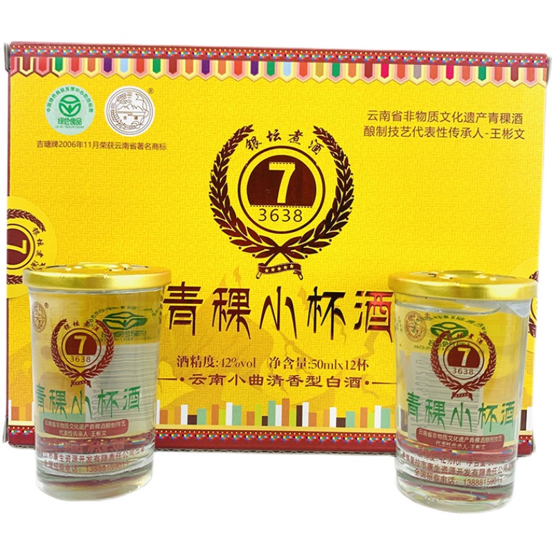 新品云南香格里拉青稞小杯酒 50mlx12杯吉塘牌42度 清香型特产酒