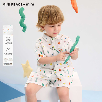 [A类亲肤]MINIPEACE太平鸟童装男宝宝套装夏季短袖衬衫短裤两件套