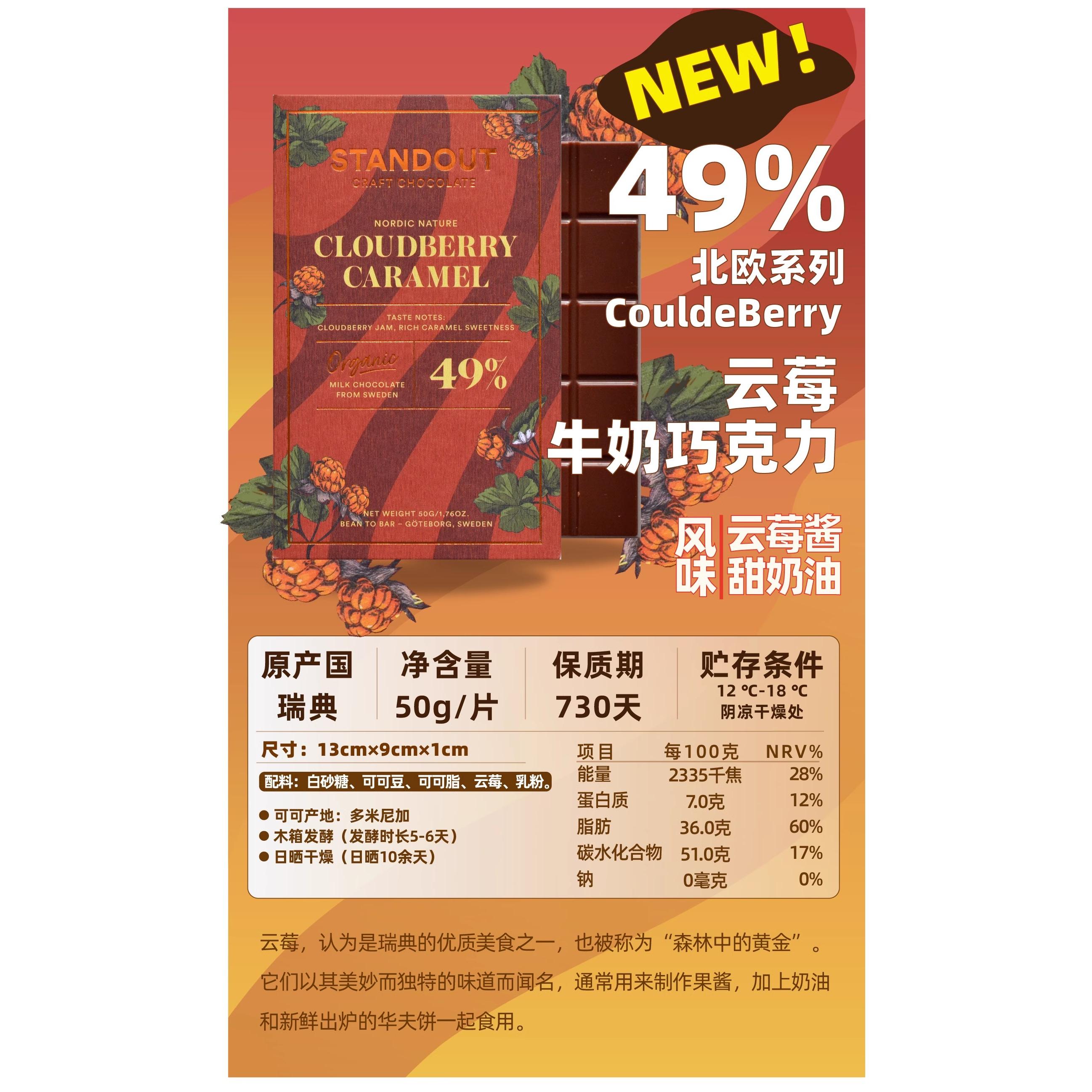 瑞典进口 standout单源草莓蓝莓咖啡牛肝菌牛奶黑巧克力50g获奖