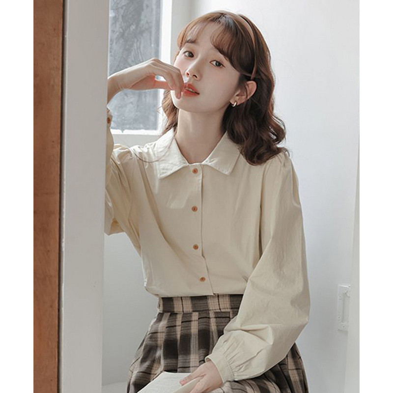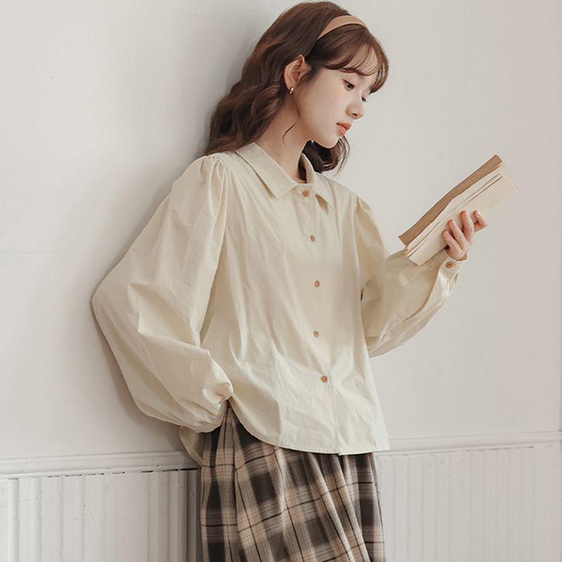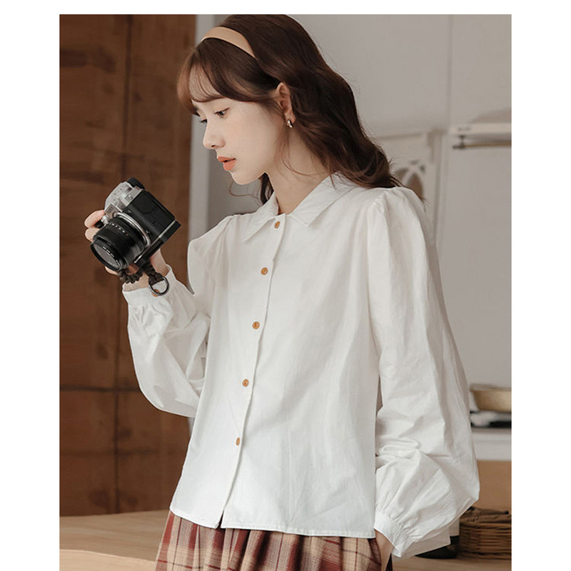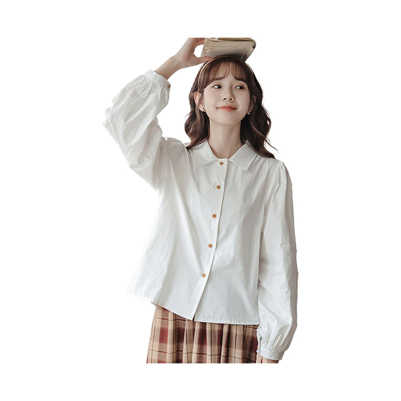 女个性简约宽松长袖白色翻领衬衫