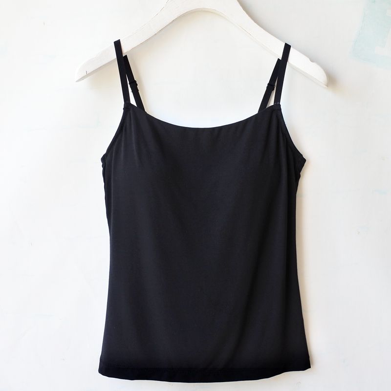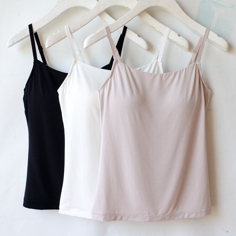 吊带背心女士莫代尔薄软有垂感舒适百搭免穿文胸黑白灰肤色打底衫