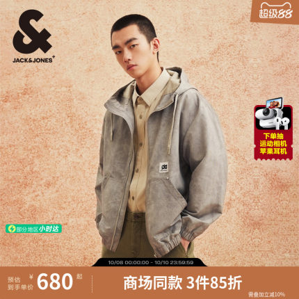 杰克琼斯男装春秋季宽松25年潮字母贴布装饰抽绳连帽夹克外套上衣