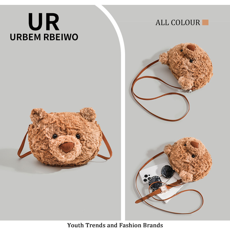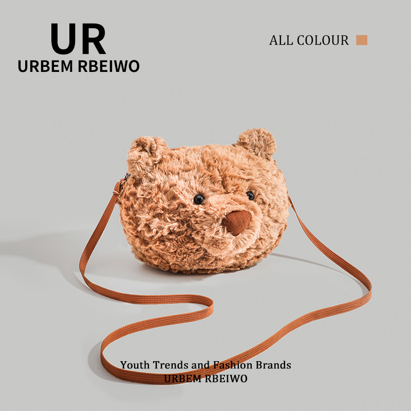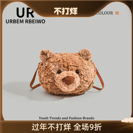 UR包包女赵露思同款可爱洋气毛茸茸巴塞罗那小熊包单肩斜挎毛毛包