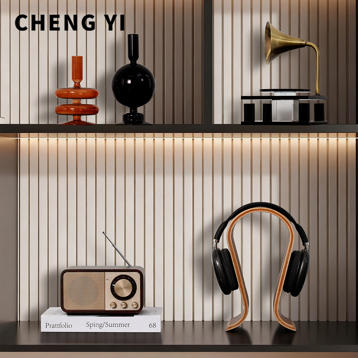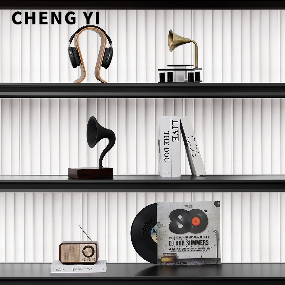 诚艺意式轻奢复古唱片机桌面艺术摆件样板间家居客厅电视柜装饰品