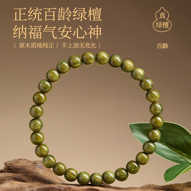 百年绿檀木散珠天然檀木手串女款木质文玩檀香佛珠紫檀黑檀手链男