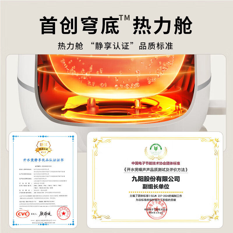 九阳电热水壶1.7LU底轻音速沸
