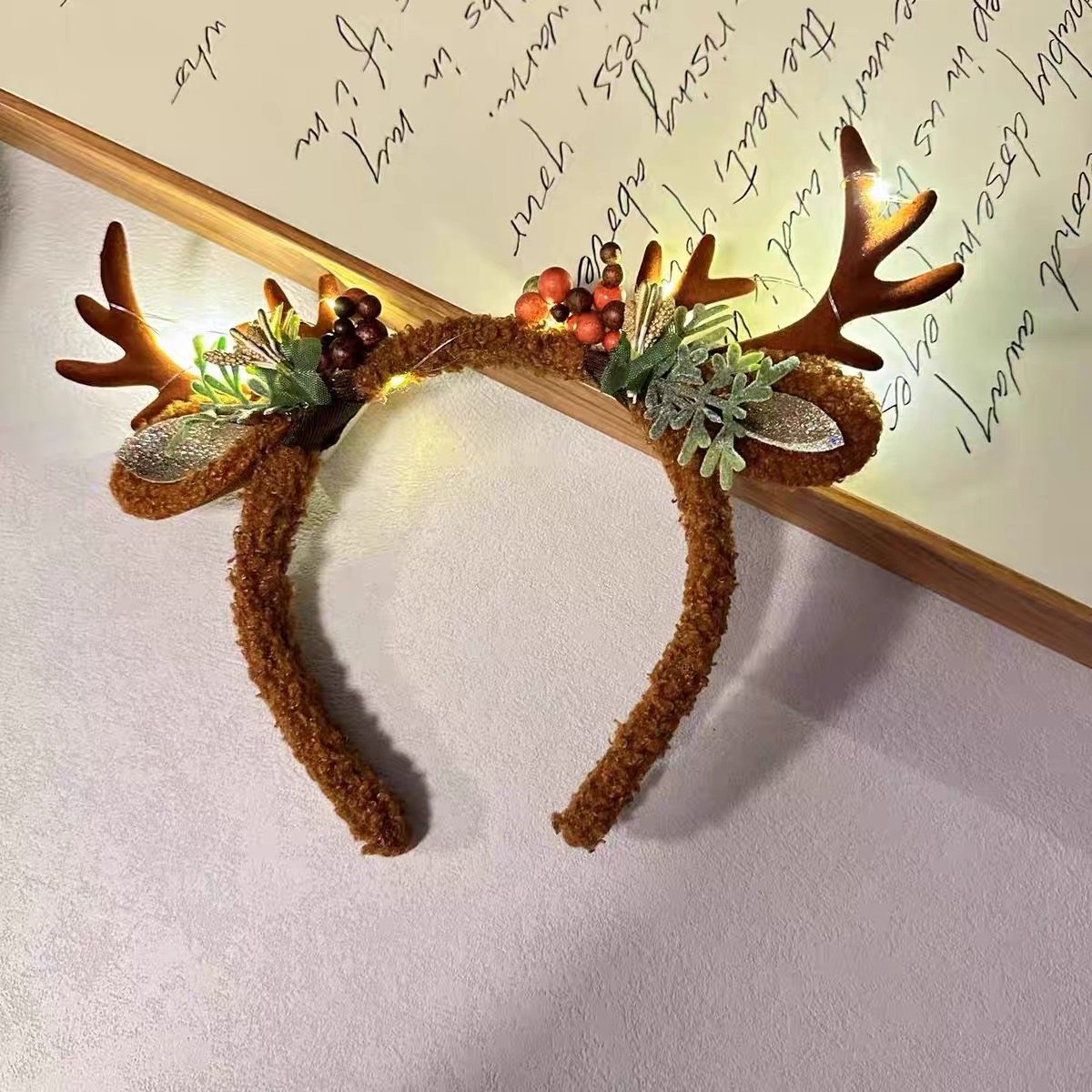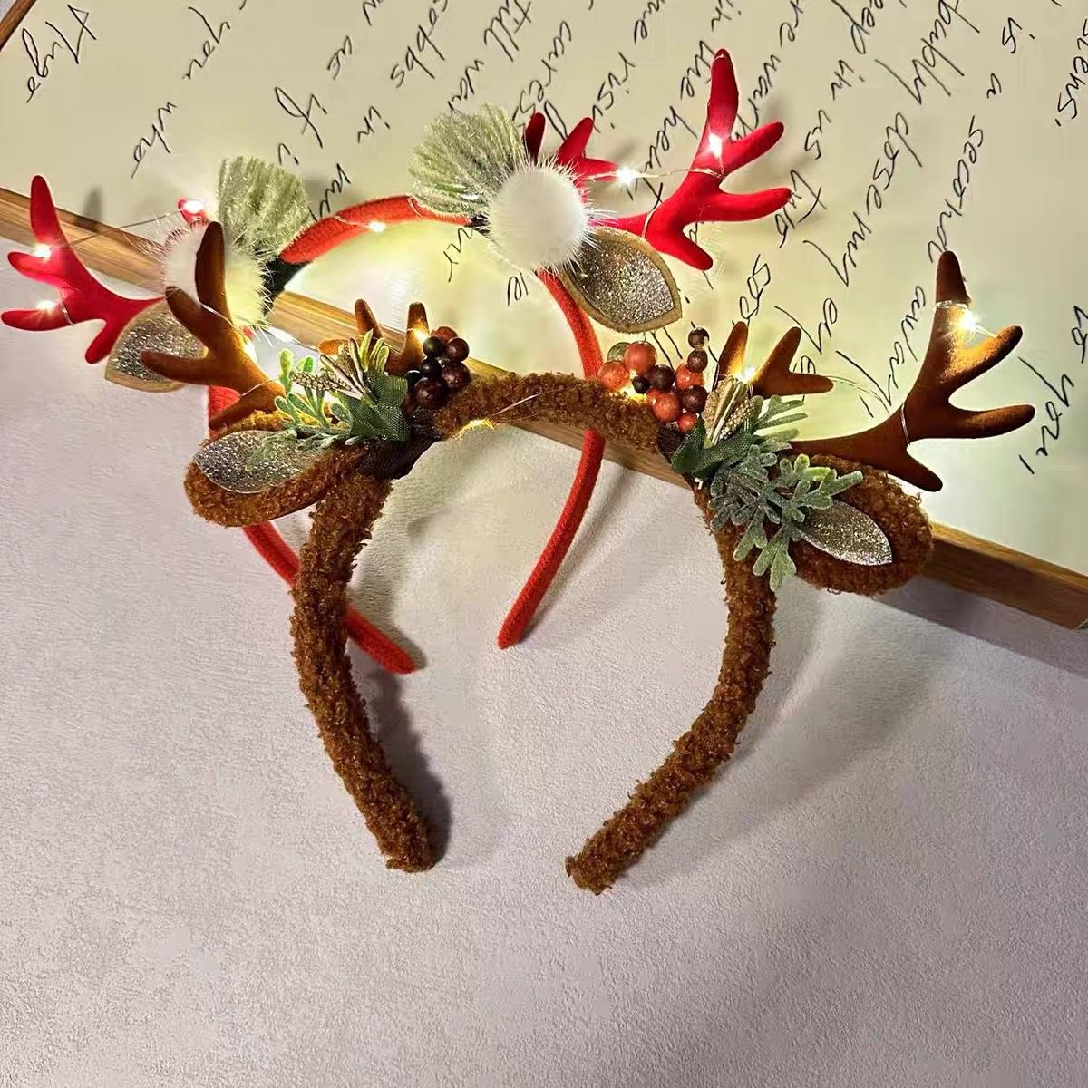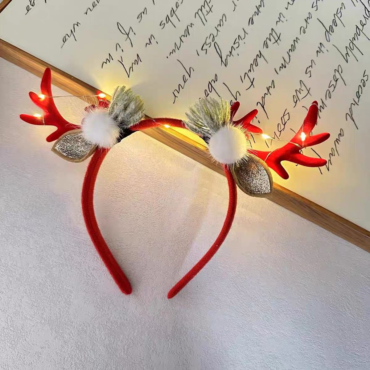 圣诞节头饰鹿角发箍儿童闪光头箍女麋鹿发饰发卡拍照道具表演配饰