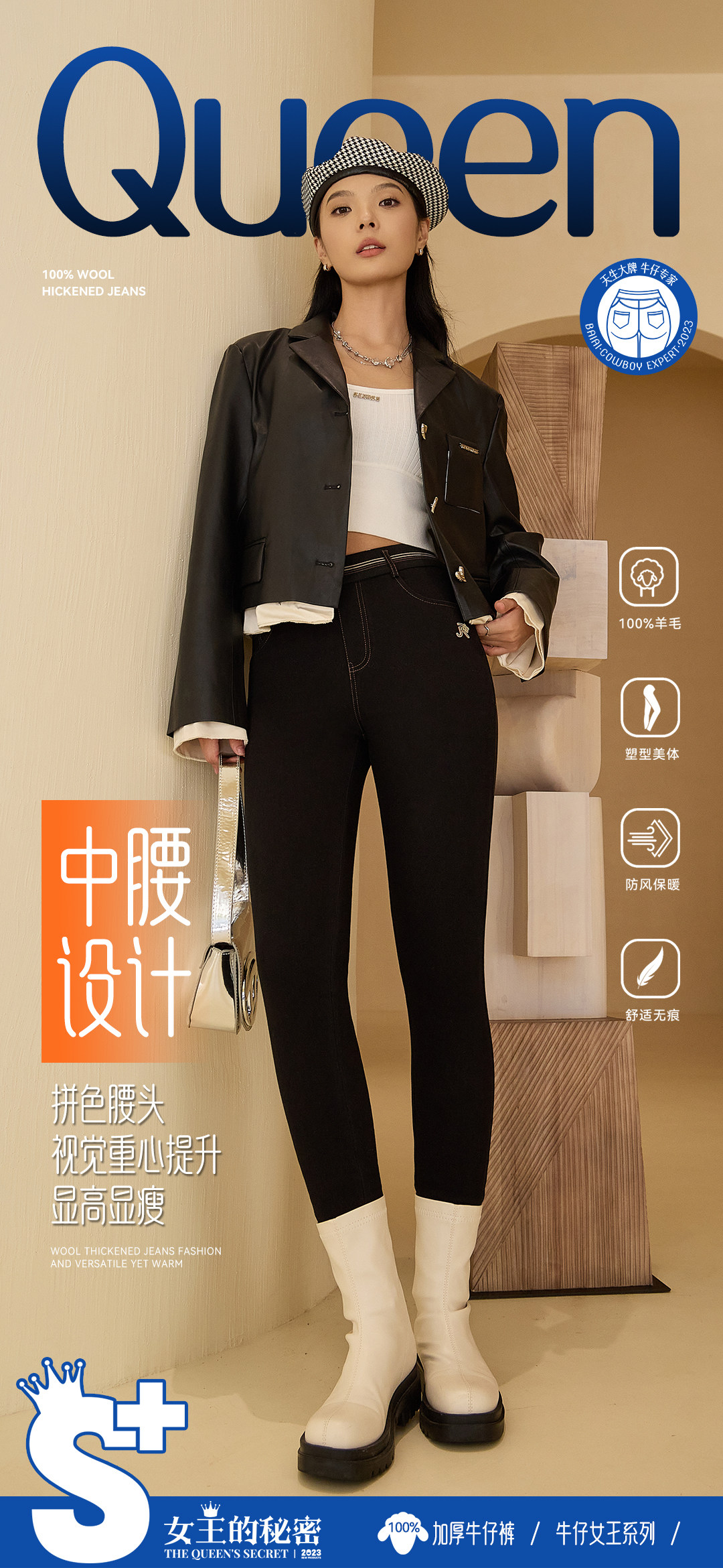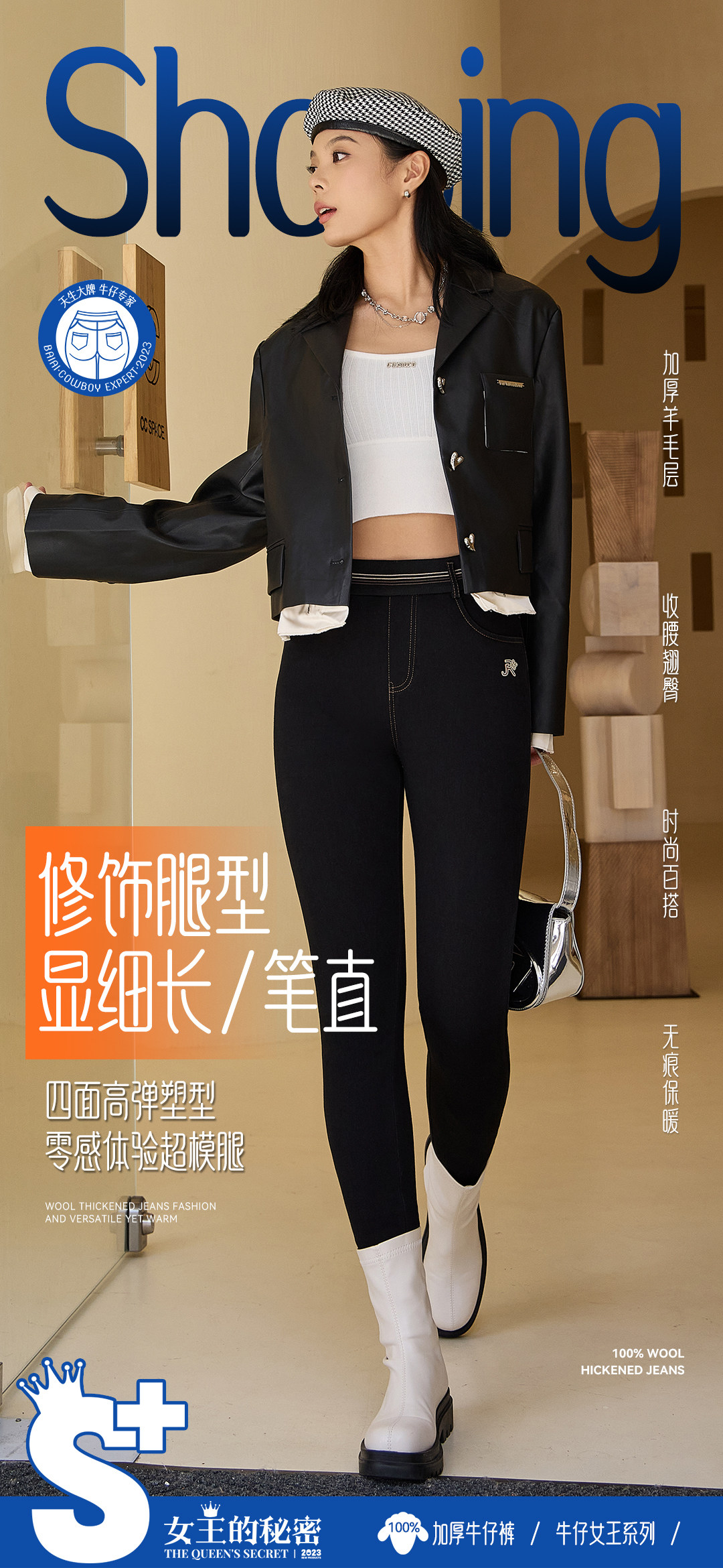 正品百依爱92327女冬高腰羊毛加厚紧身外穿打底牛仔小脚保暖长裤