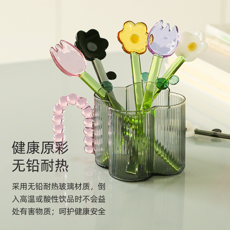 创意樱花花高颜值搅拌棒精致咖啡小勺子长柄玻璃耐高温布丁甜品勺