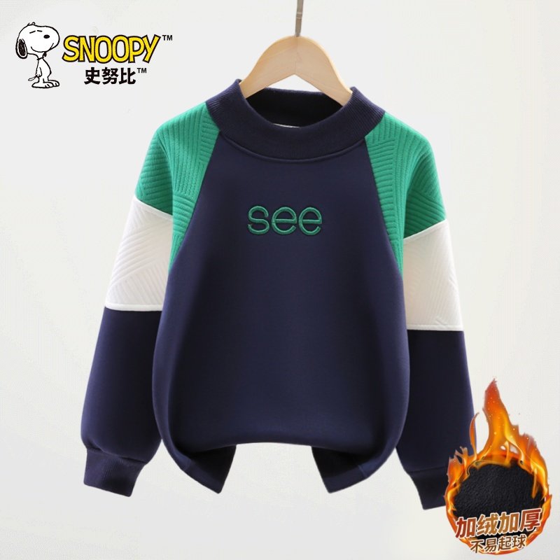史努比童装男童加绒卫衣中大童冬季2025新款儿童加厚保暖长袖上衣