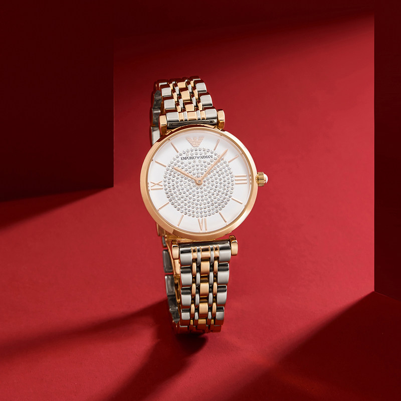 阿玛尼官方正品手表女 时尚镶钻满天星钢带女表生日礼物AR1926