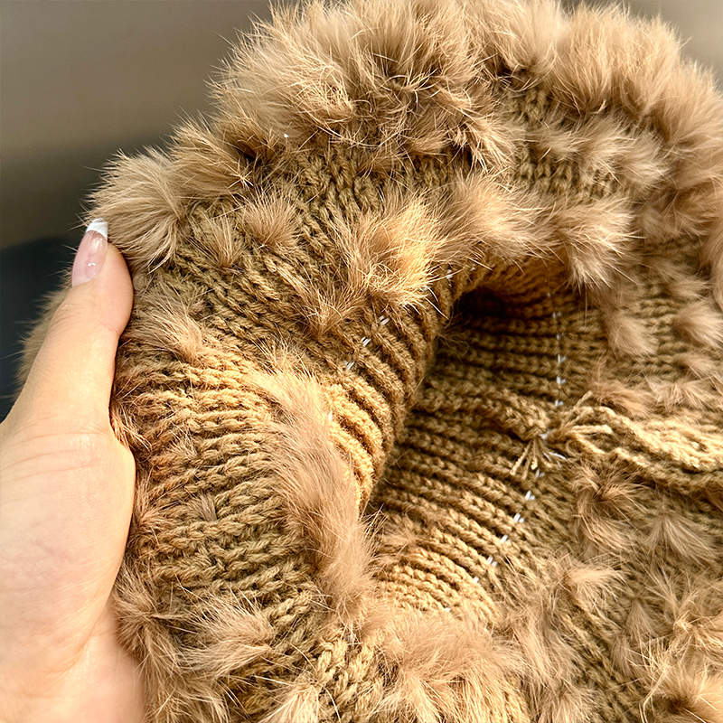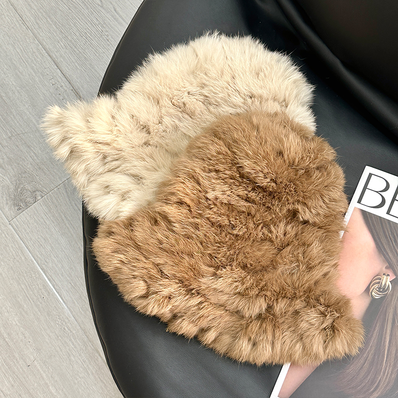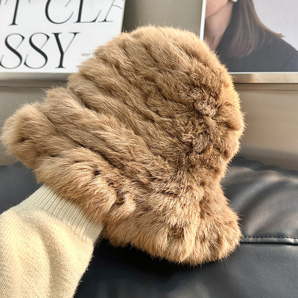 兔毛帽子女秋冬季加厚保暖毛线帽显脸小皮草毛毛帽护耳毛绒渔夫帽