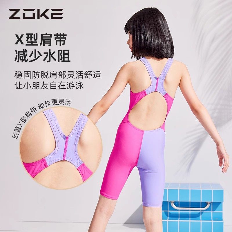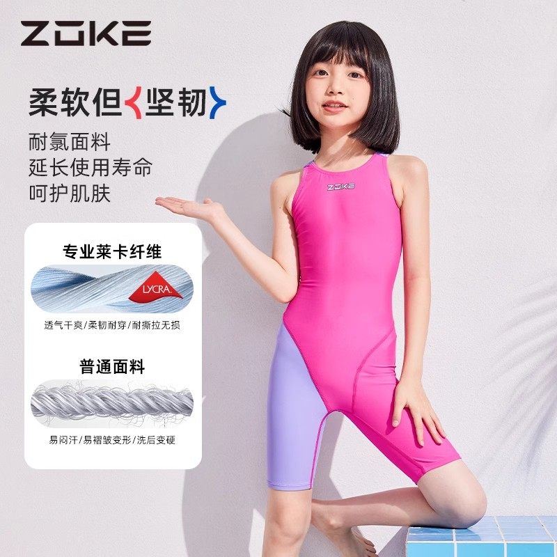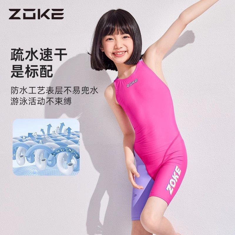 洲克女童泳衣zoke2026新款儿童中大童女孩专业竞速连体五分游泳衣