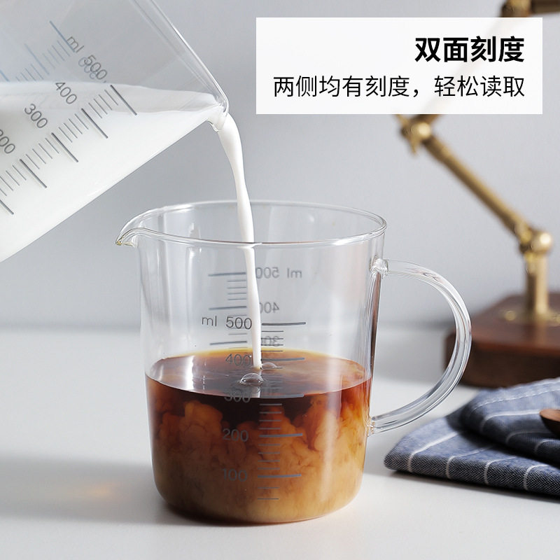 日本霜山量杯耐热高硼硅玻璃杯500ml烘焙牛奶杯微波加热刻度杯