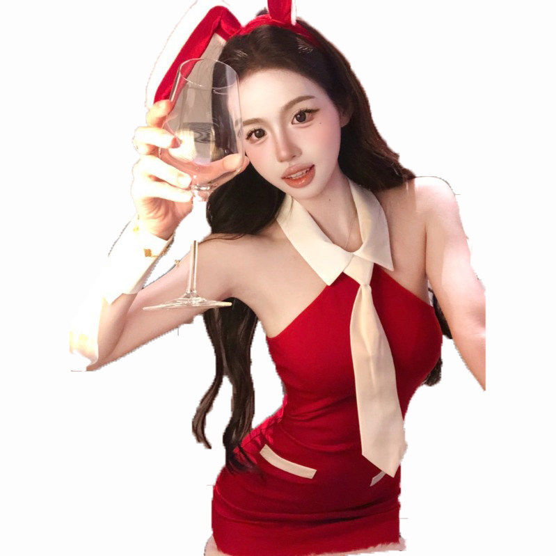 性感连衣裙女秋季制服红色圣诞节cosplay服装战袍穿搭包臀短裙子