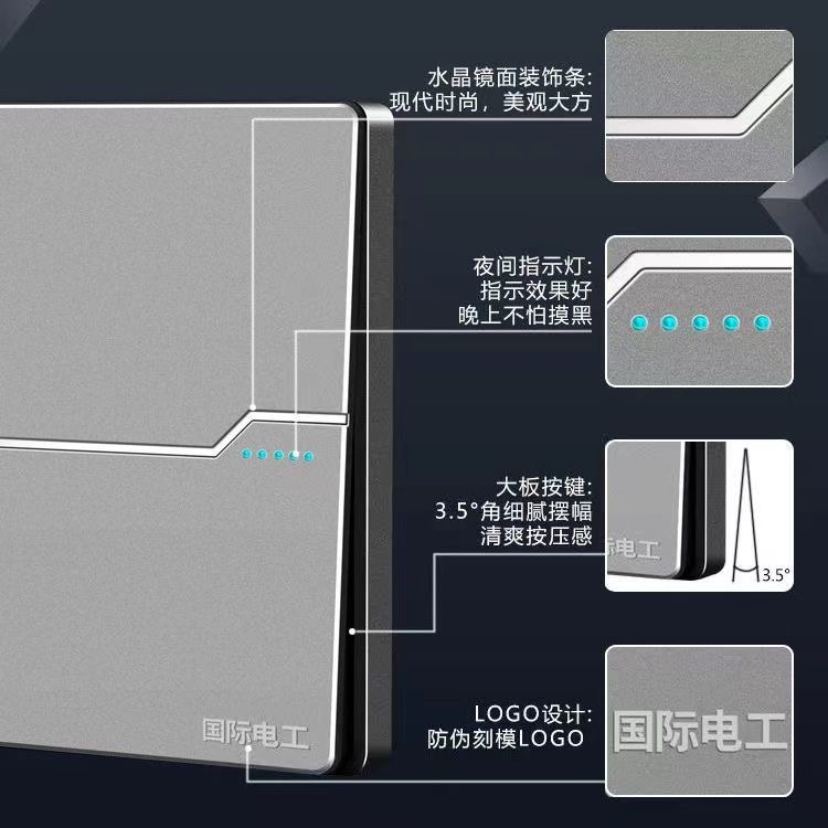 国际电工86型家用墙壁开关插座面板16A多孔一开五孔带USB电源插座