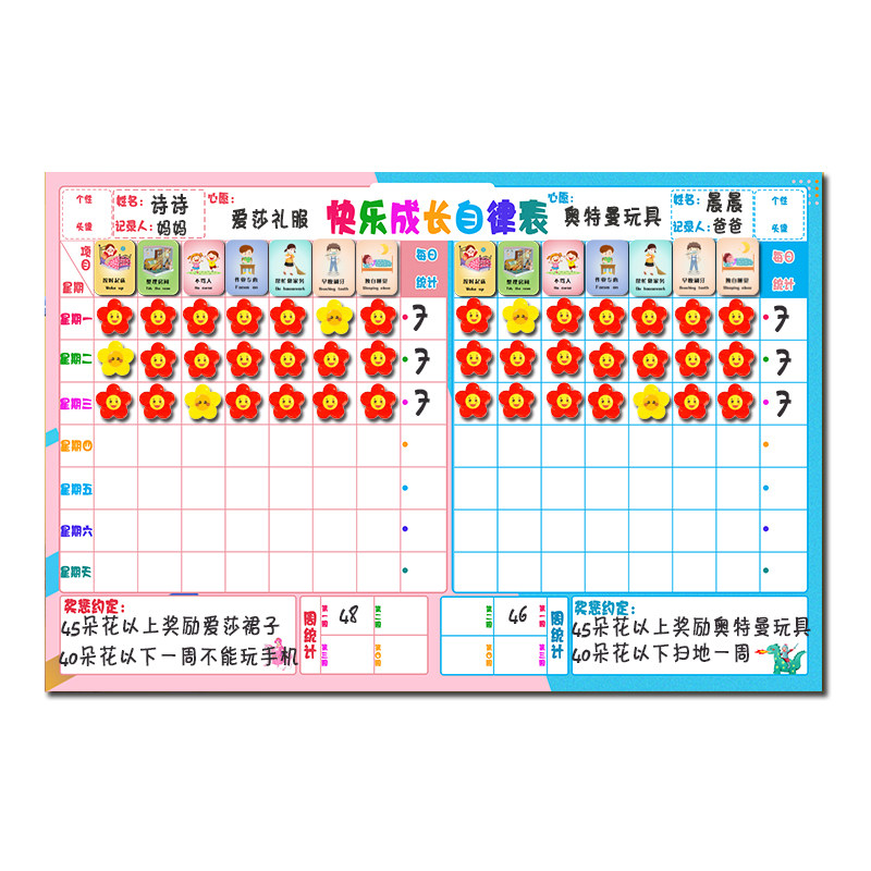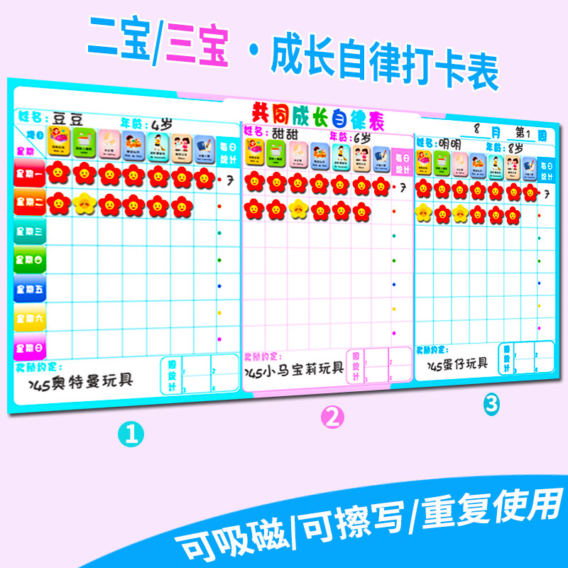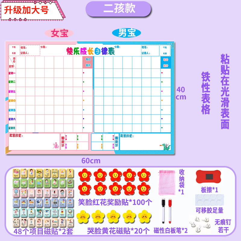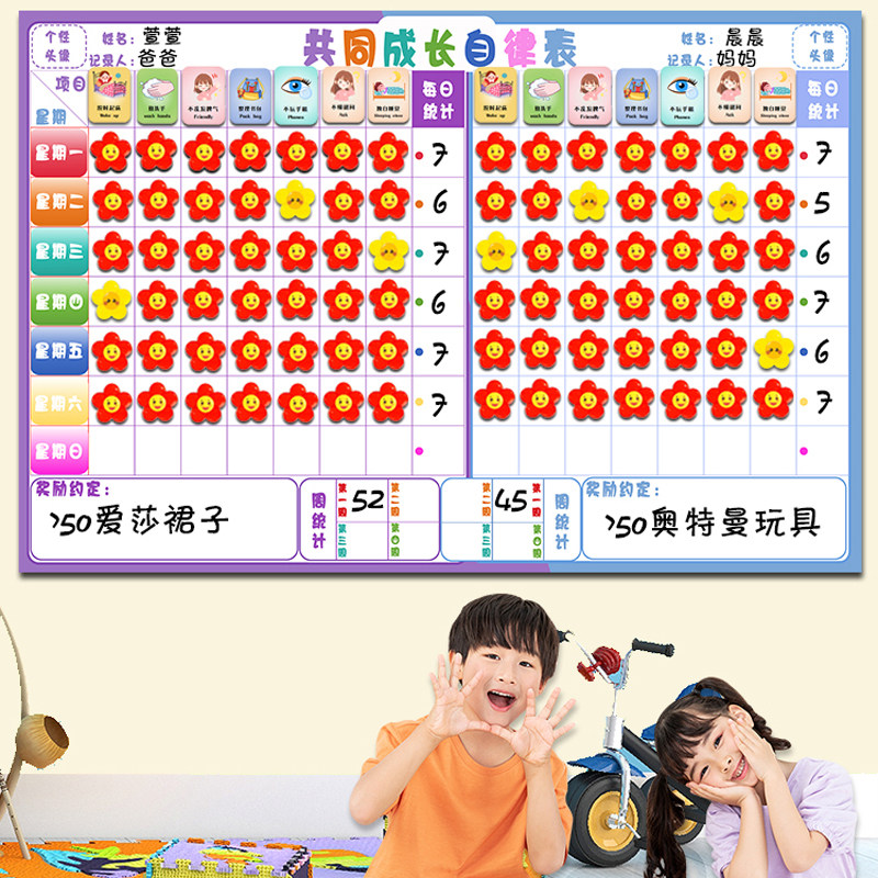 家用二宝儿童成长自律表墙贴磁力奖励打卡表好习惯养成学习计划表