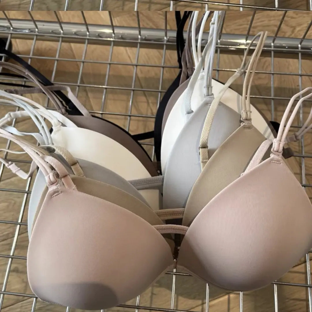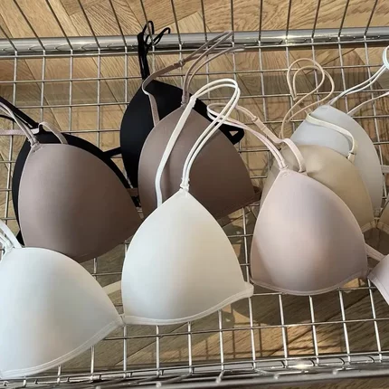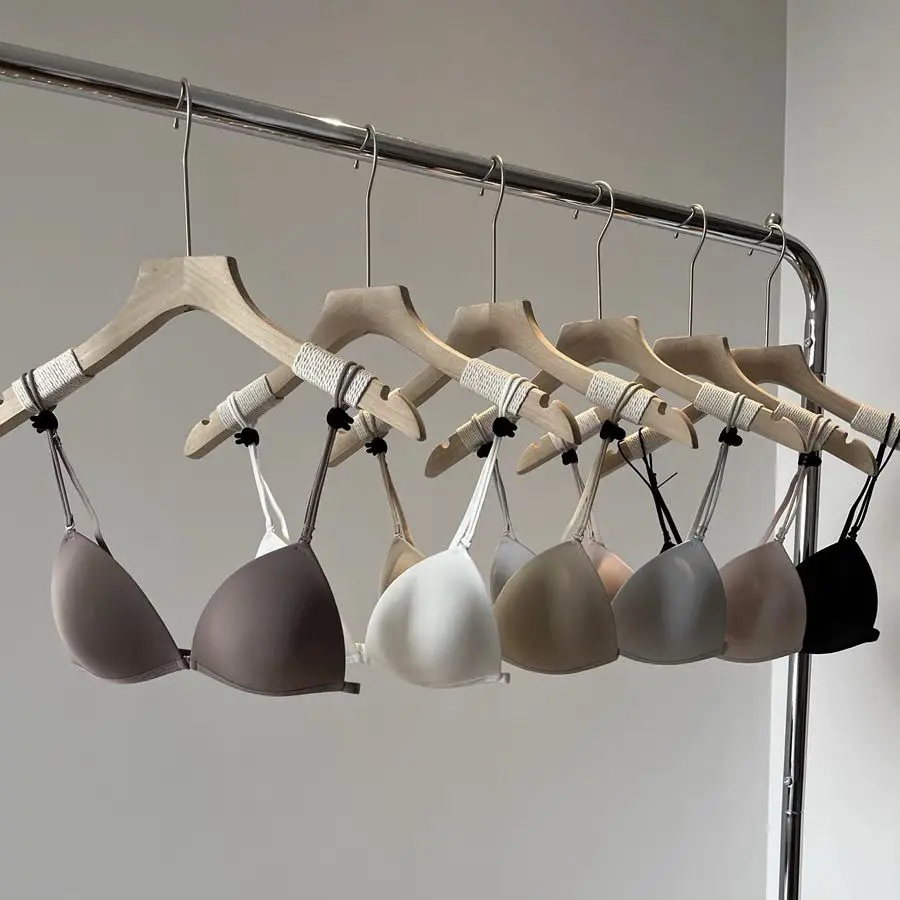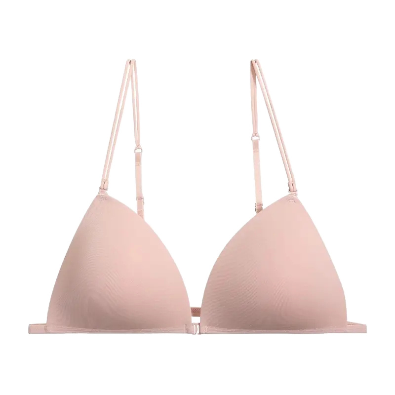 美背内衣女薄款细肩带法式前扣小胸聚拢三角杯舒适光面无痕文胸罩