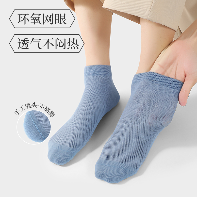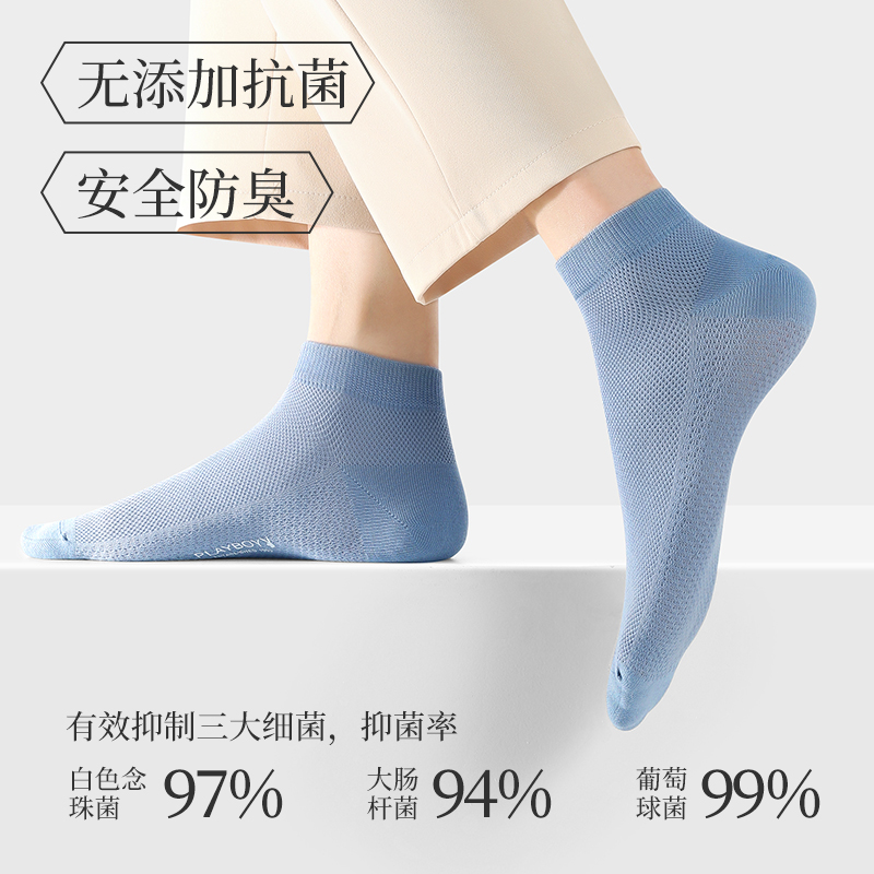 花花公子袜子男士短袜100%全棉纯棉抗菌网眼透气夏季薄款男款船袜