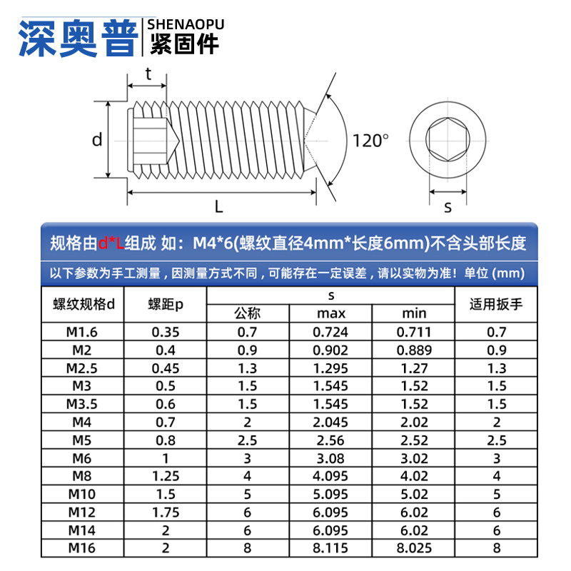 304不锈钢凹端机米紧定螺丝无头内六角螺钉顶丝M2M3M4M5M6M8-M16