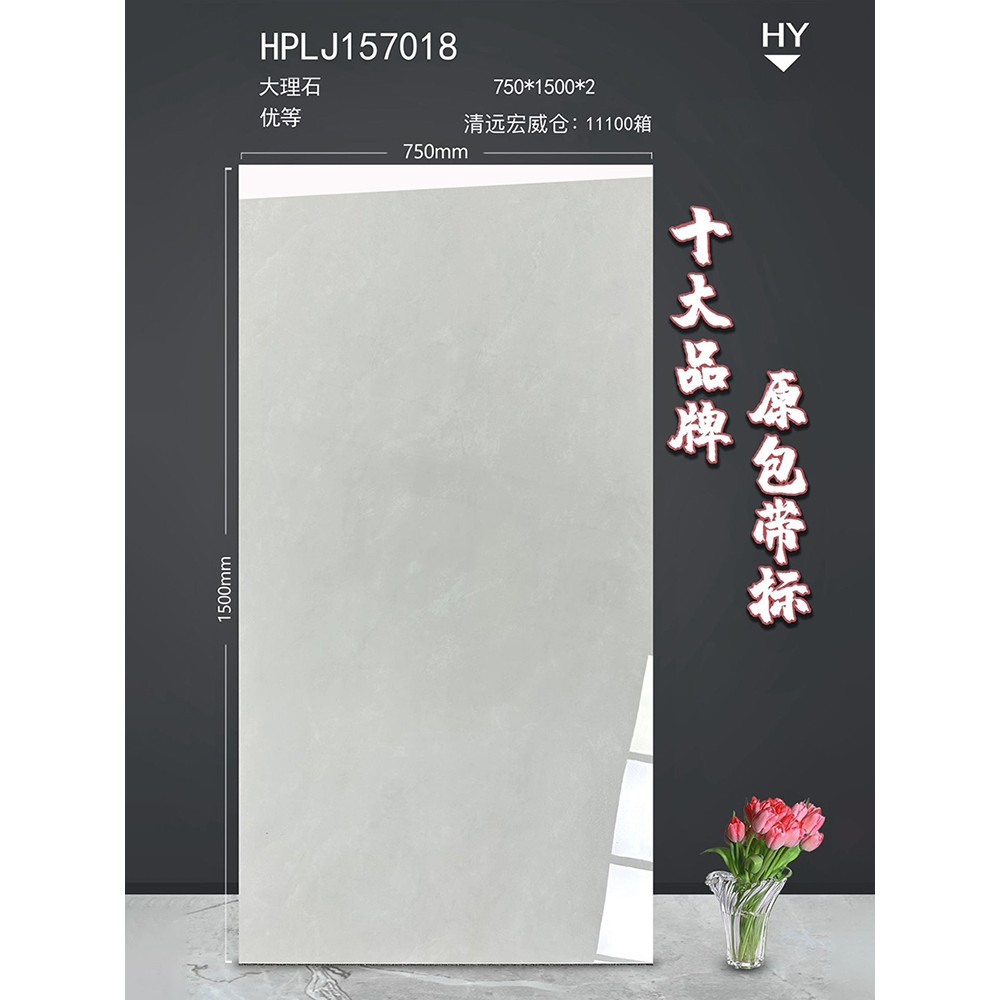 宏宇瓷砖750x1500通体大理石客厅亮光灰色地砖广东佛山防滑磁砖