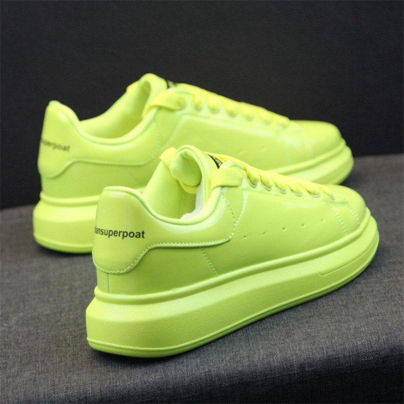 糖果色小白鞋男鞋2021夏季网红厚底内增高漆皮运动休闲荧光黄板鞋