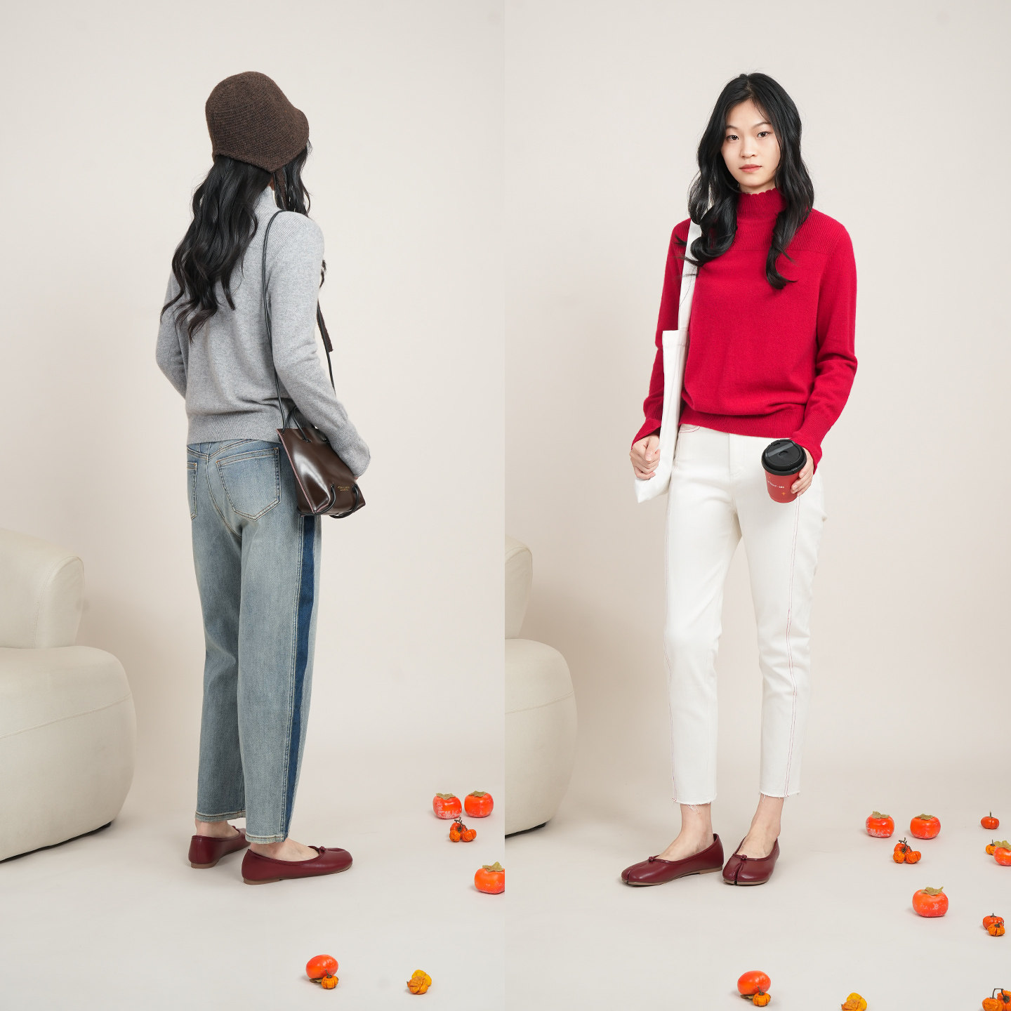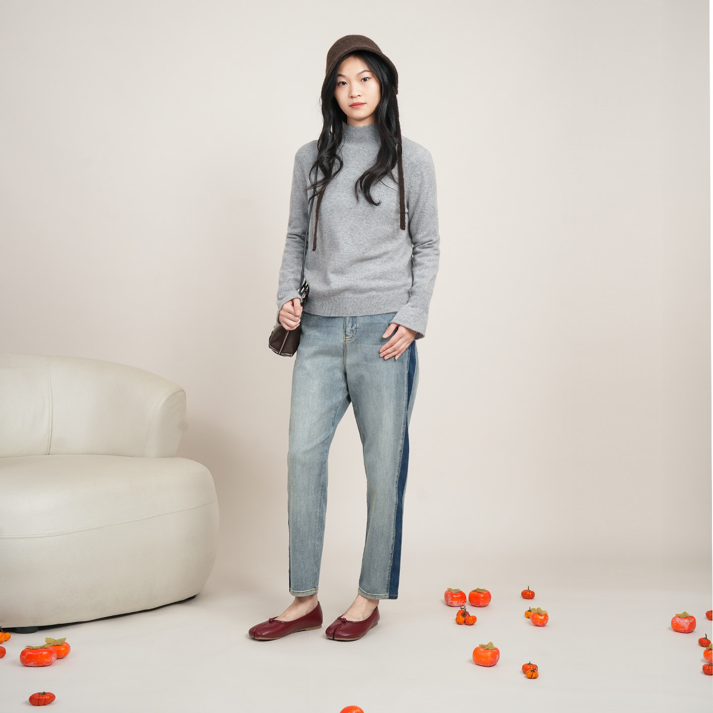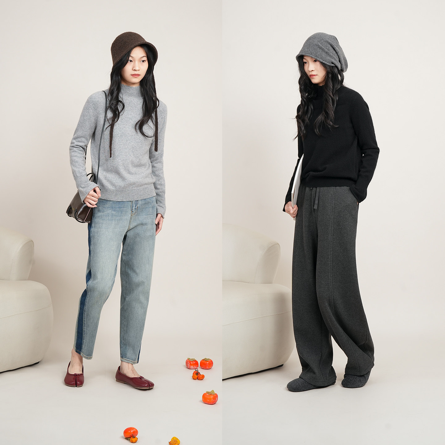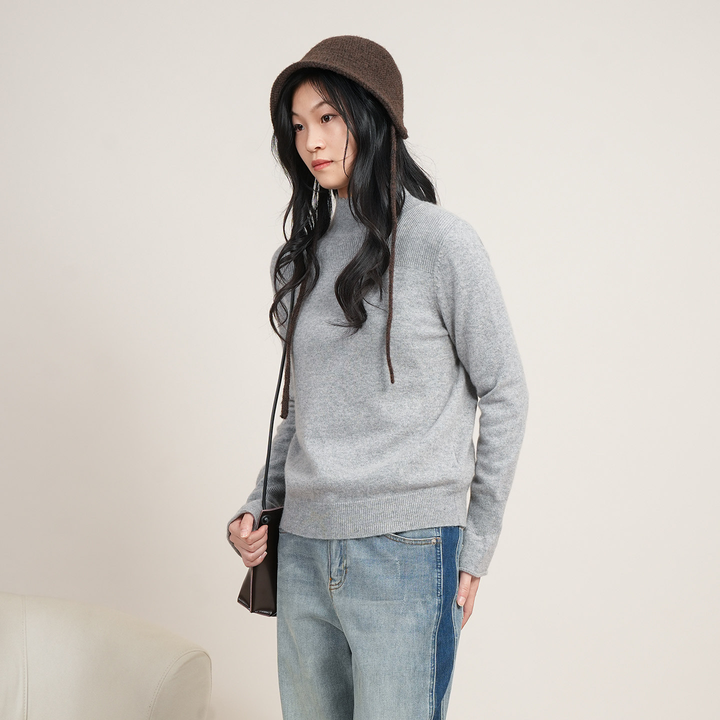 ZOLLE因为极简风高领羊绒衫女长袖修身显瘦针织衫灰色毛衣