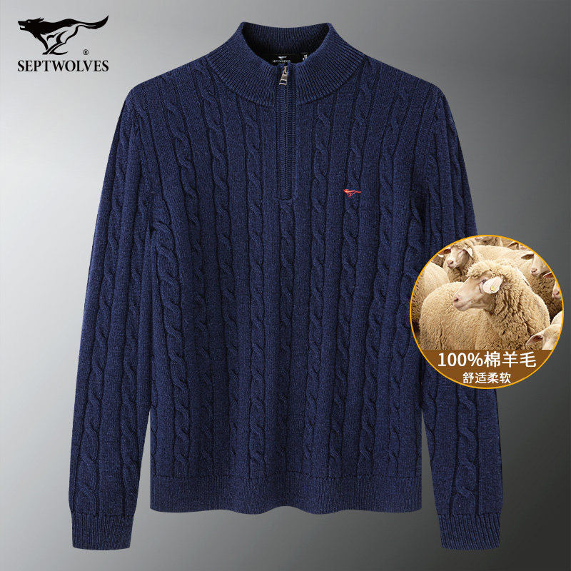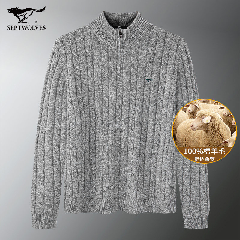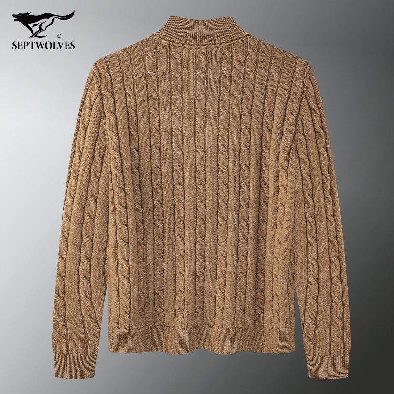 七匹狼中高领纽花厚毛衫