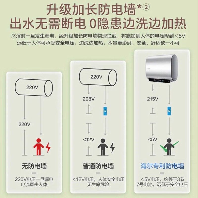 海尔一级双胆镁棒免换电热水器