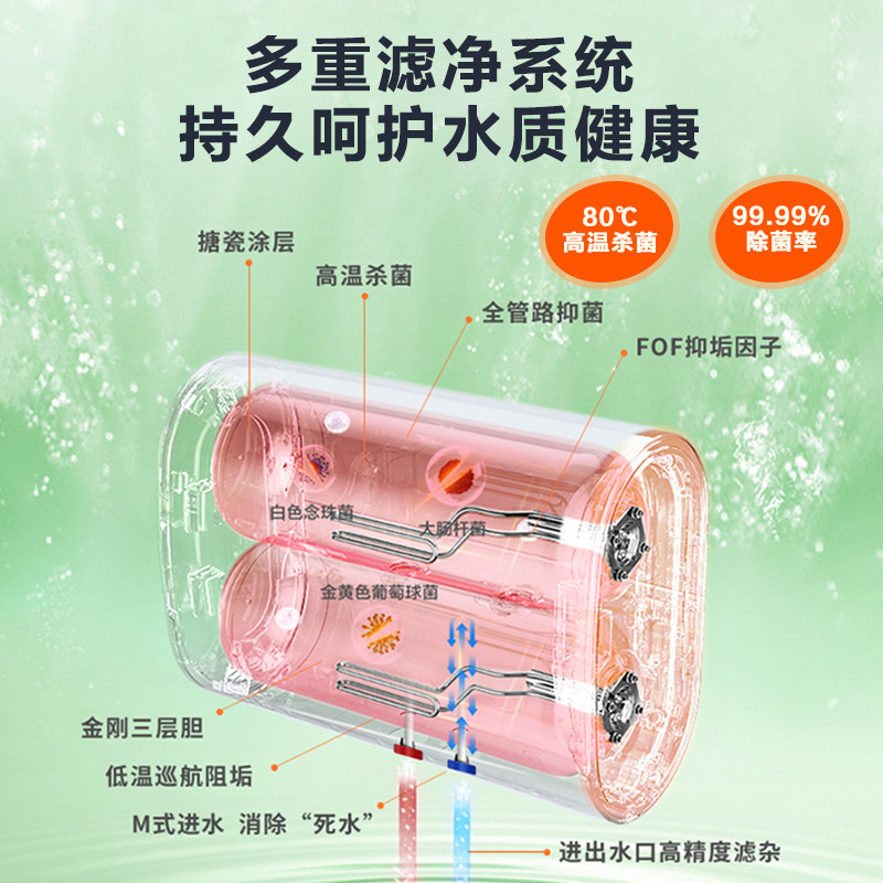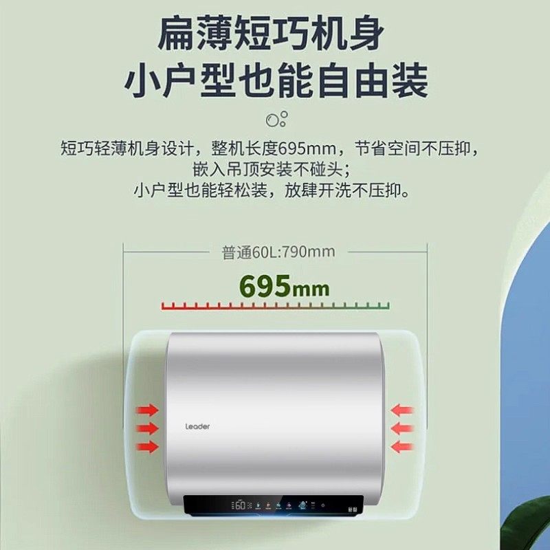 海尔出品统帅电热水器洗澡家用扁桶60升一级能效变频双胆