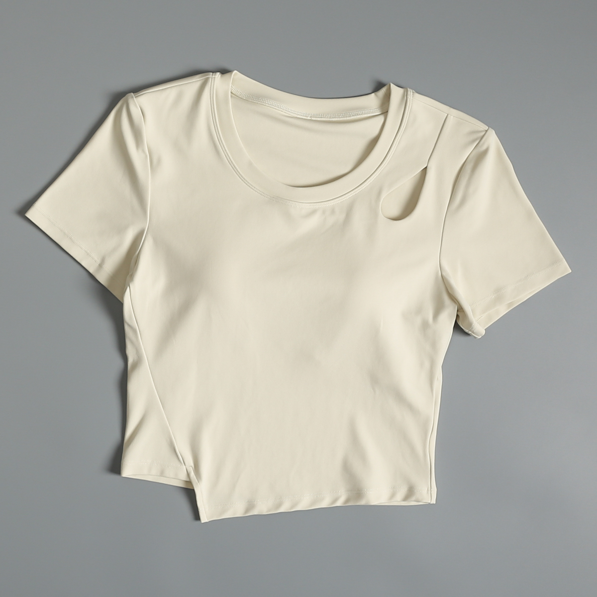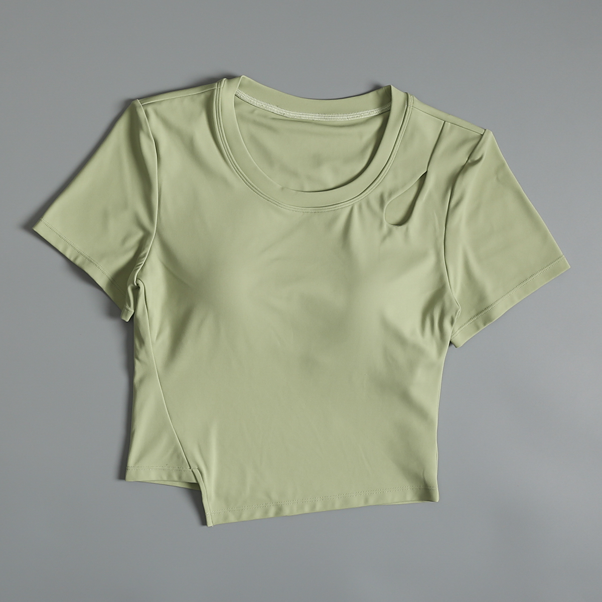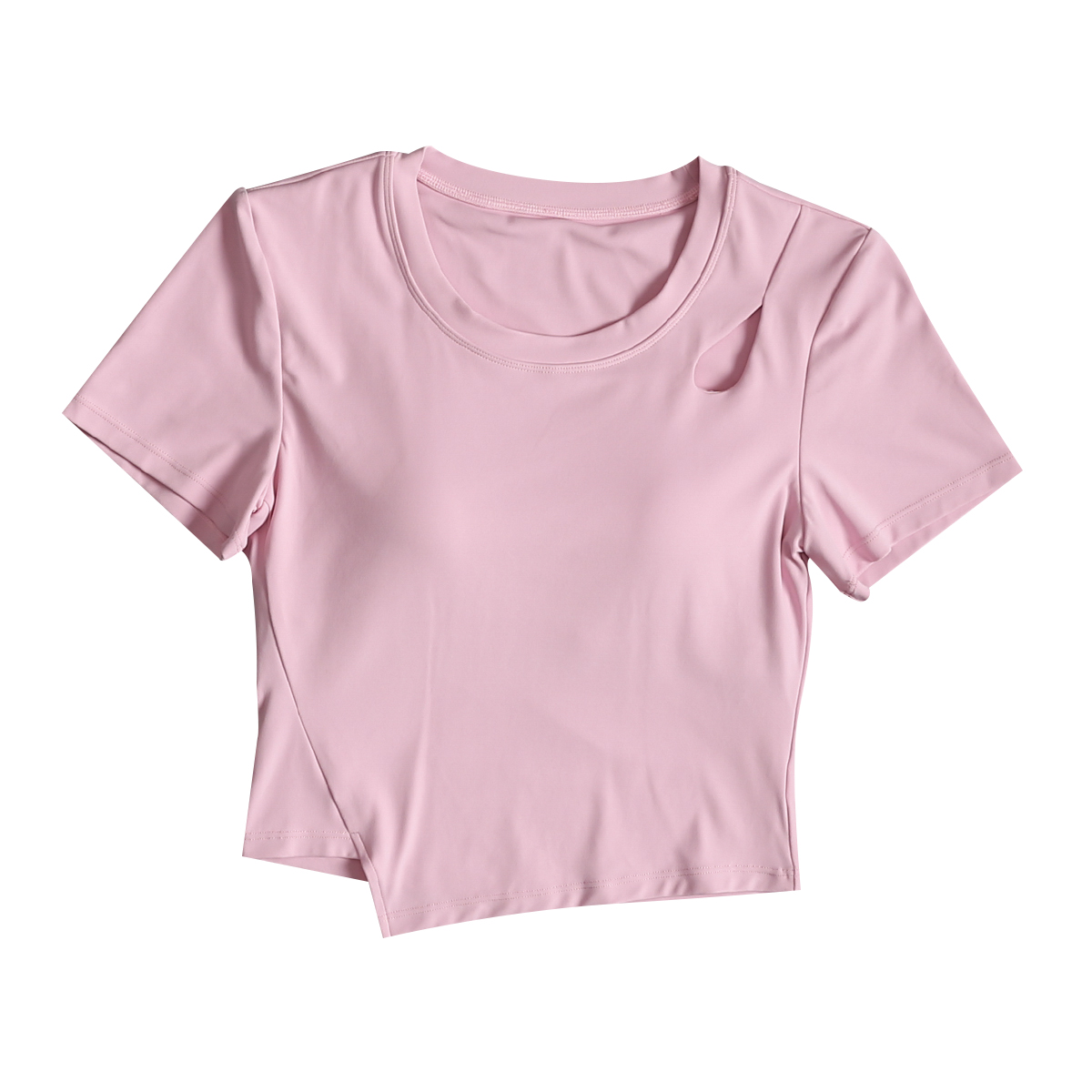 瑜伽短袖上衣女夏季性感紧身速干健身训练服带胸垫跑步运动T恤
