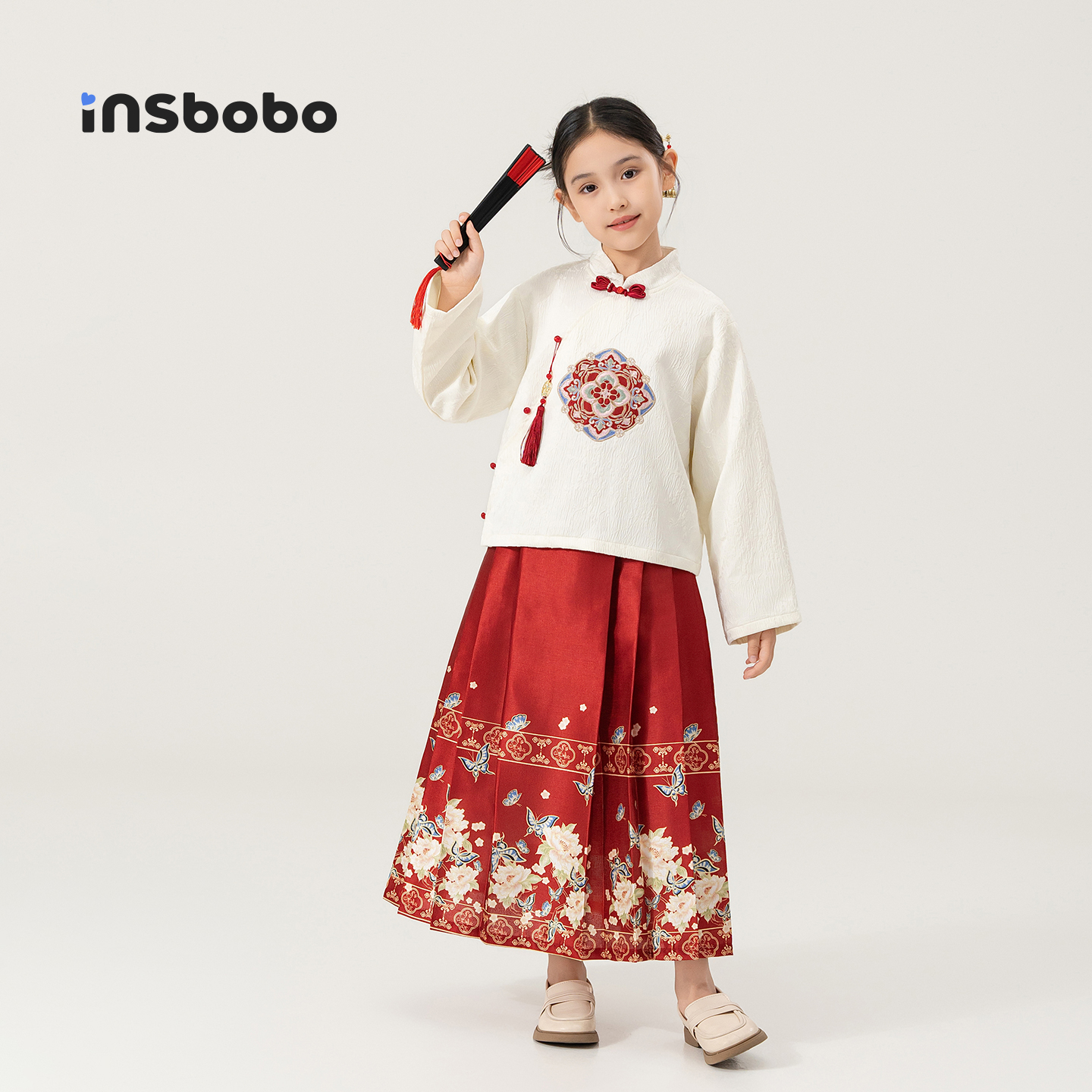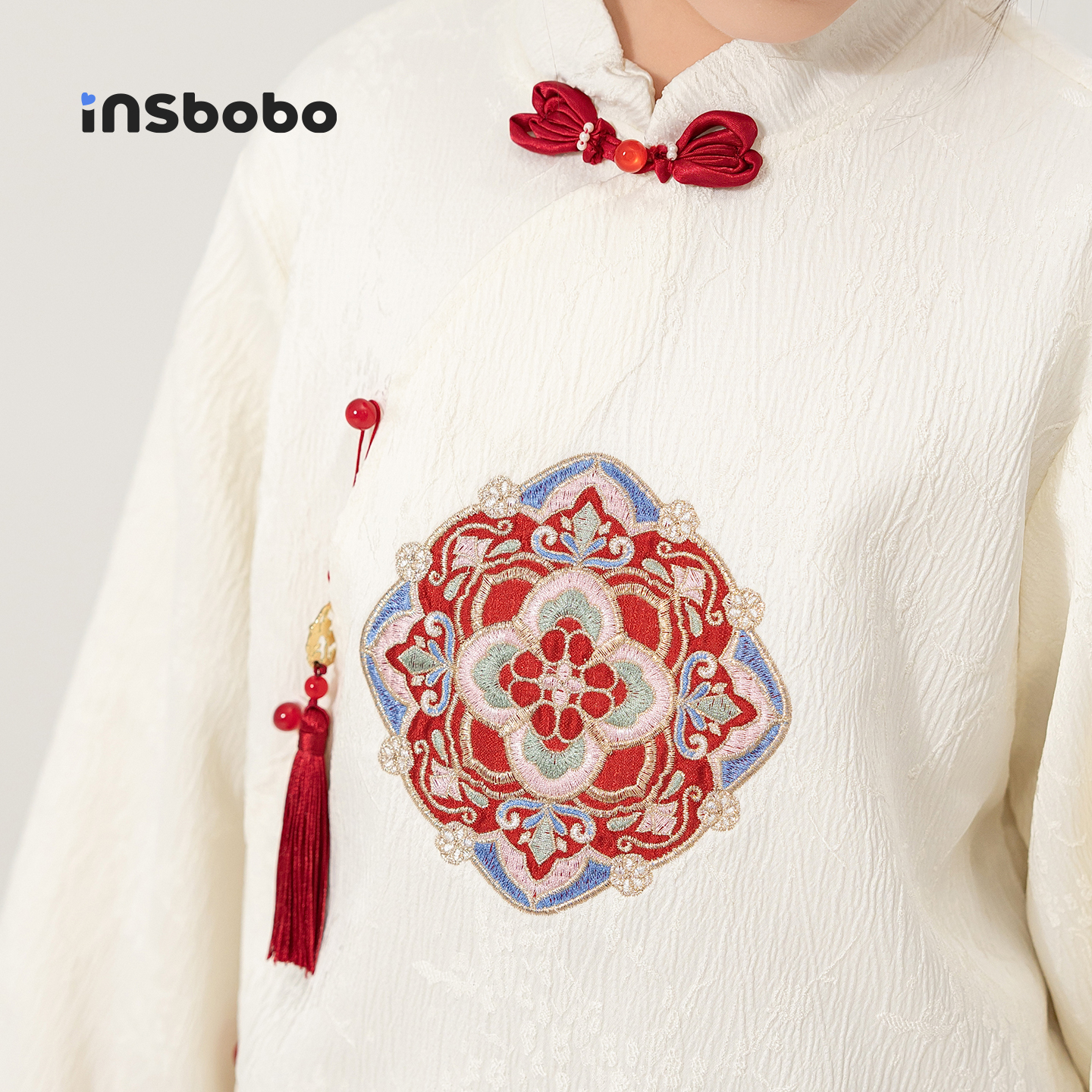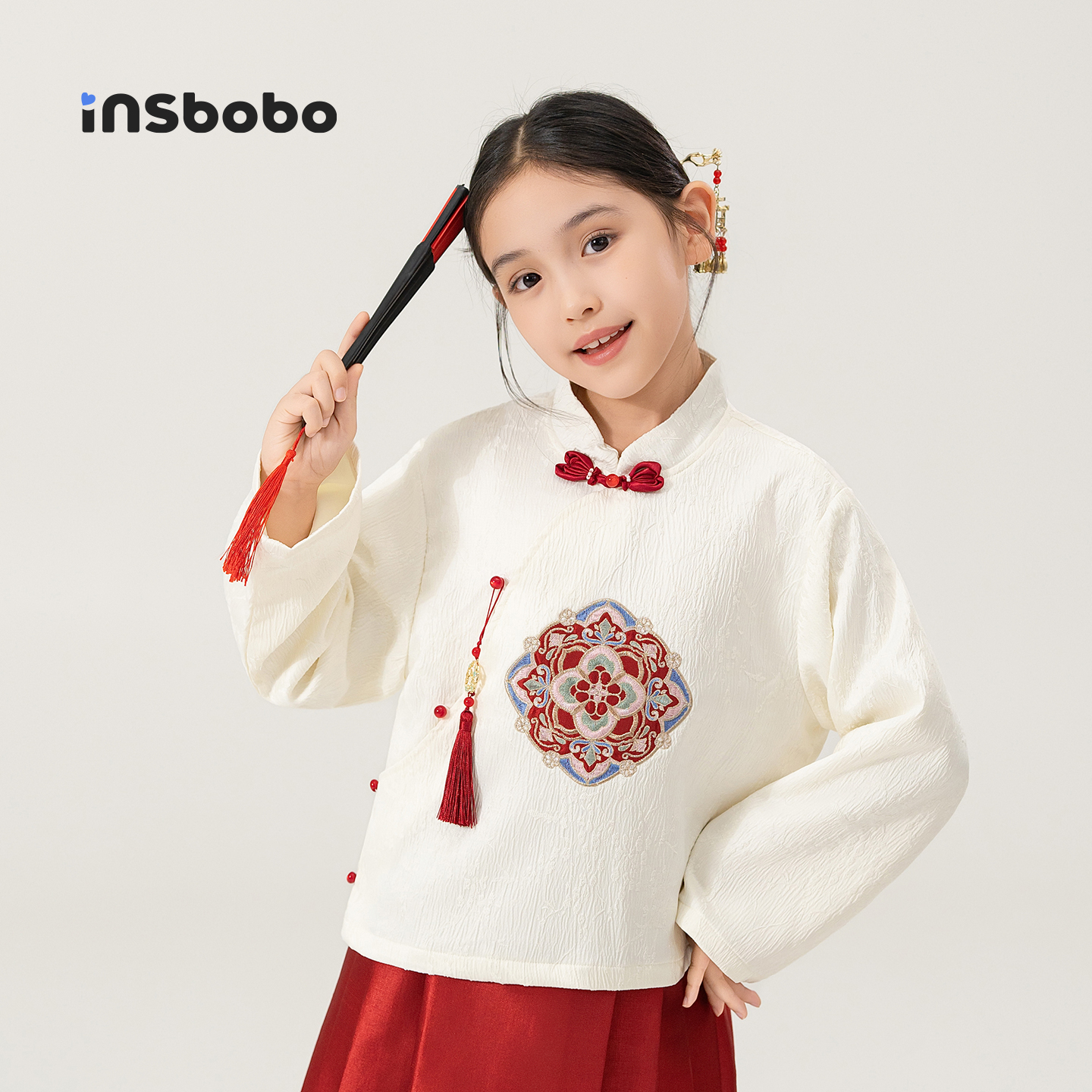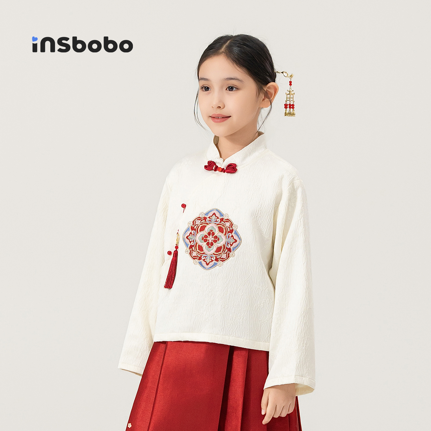 INSbobo女童t恤2025新款儿童上衣漂亮国风长袖唐装女孩衣服童装秋