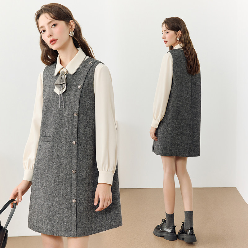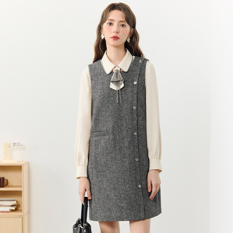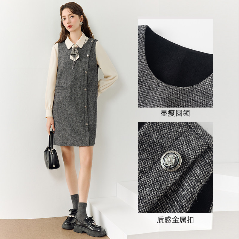 KBNE含羊毛无袖连衣裙纯色中长裙2025秋冬新款背心裙气质直筒裙女