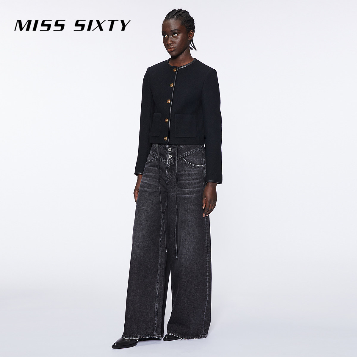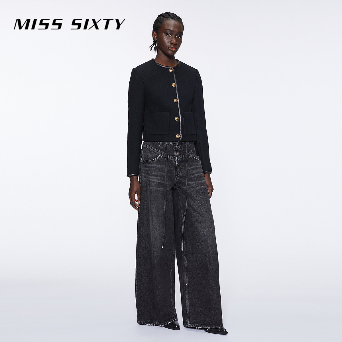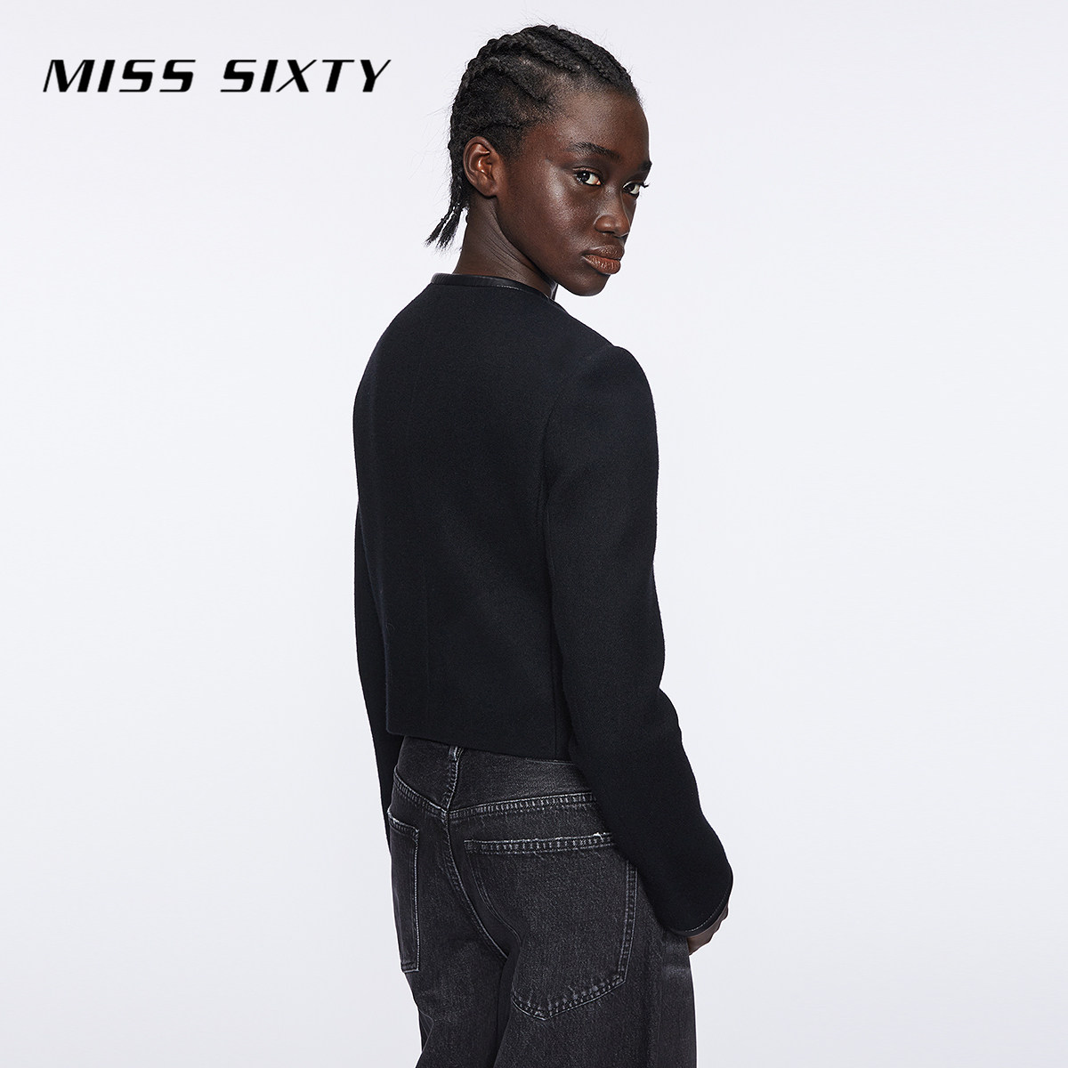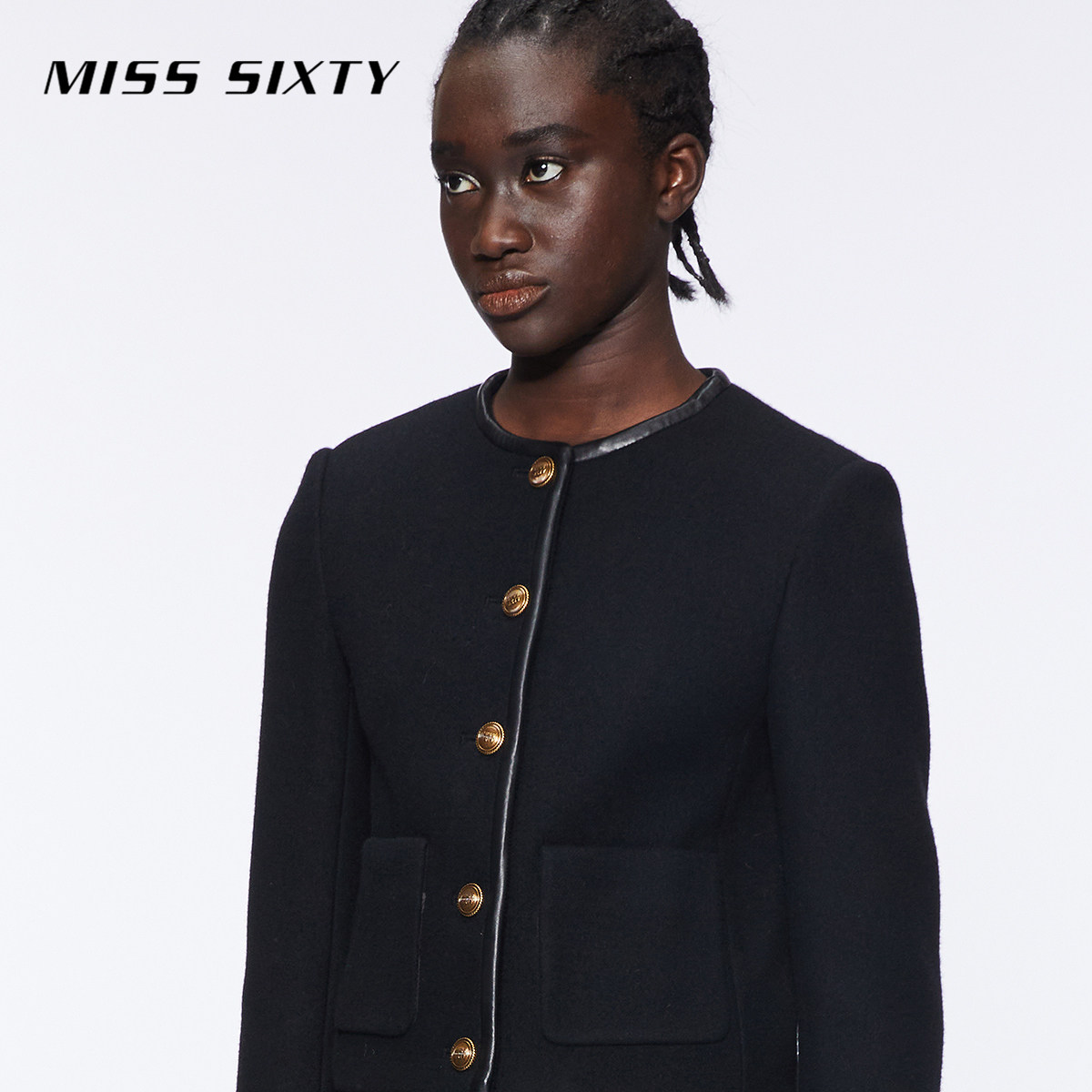 Miss Sixty冬季绵羊毛呢外套女圆领拼接静奢小香风短款