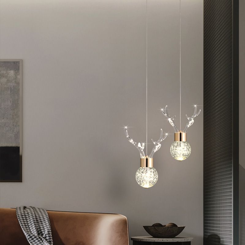 轻奢水晶卧室床头小吊灯创意鹿角现代简约吧台灯北欧设计师吊线灯