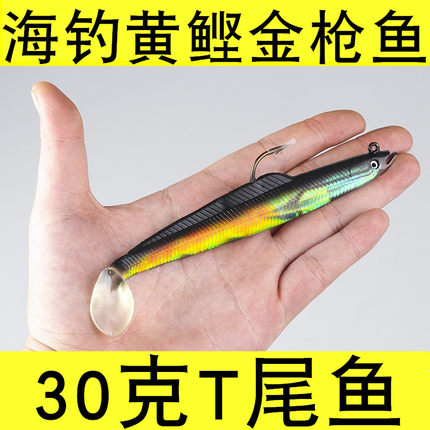 路亚铅头钩软饵t尾仿生包背钩防挂30g钓海鲈狼黄鲣马鲛金枪鱼假饵