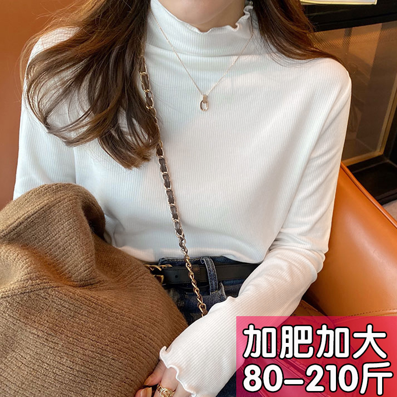 木耳边打底衫女西装内搭大码磨毛薄绒半高领长袖t恤上衣胖mm秋冬