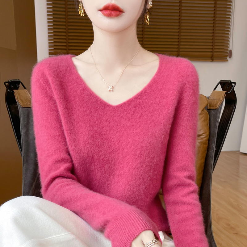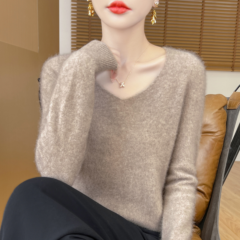 修身内搭羊毛女套头V领毛衣宽松大码秋冬一线成衣新款针织打底衫