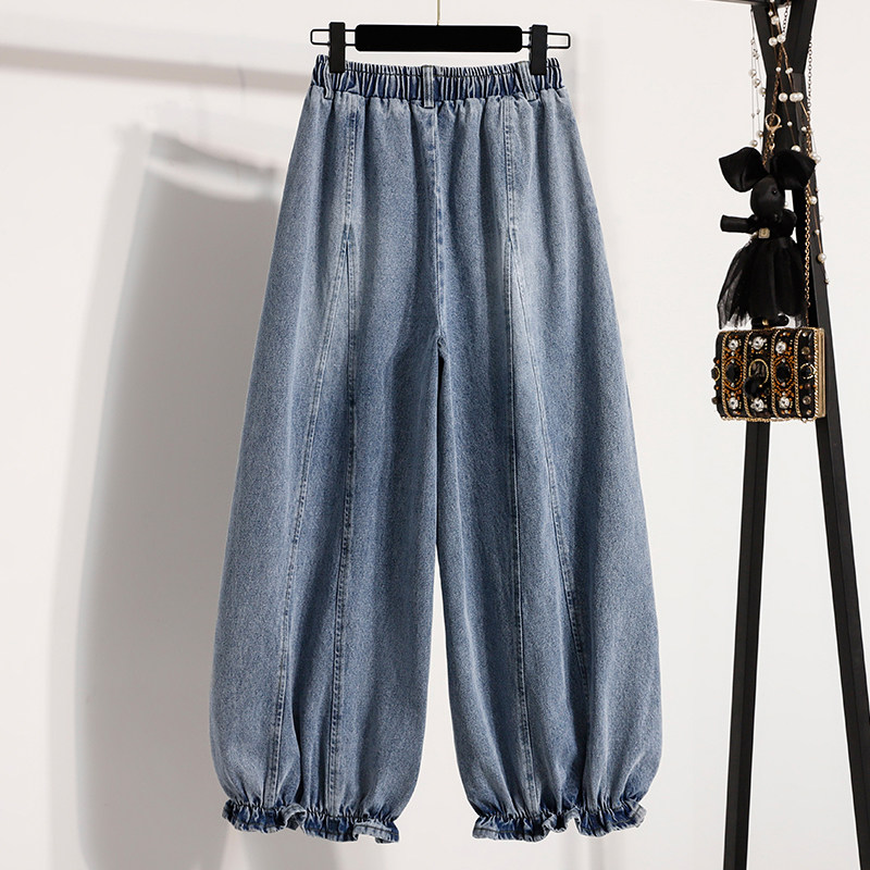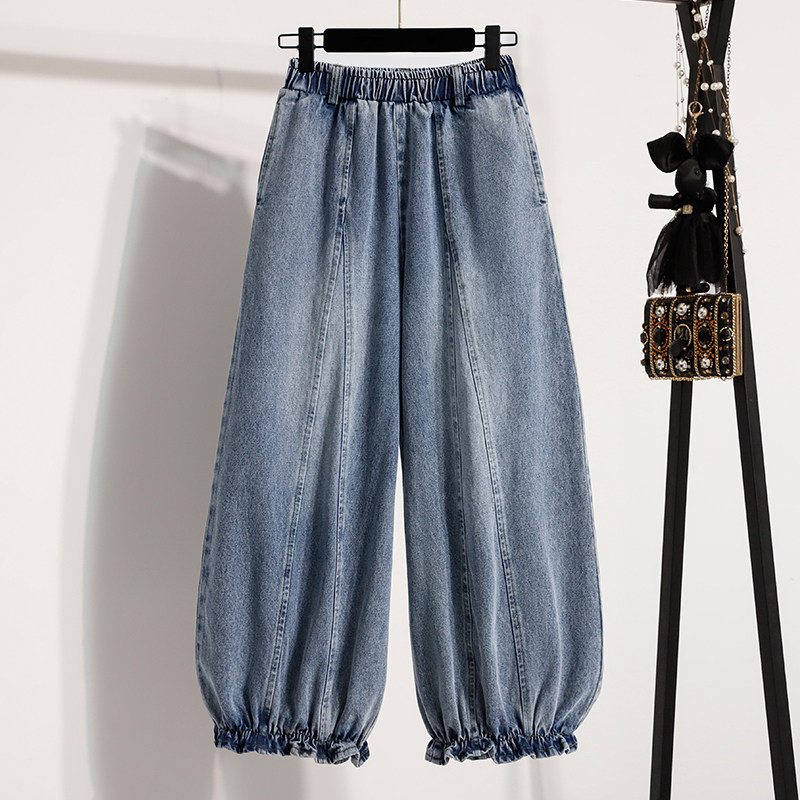大码显瘦束脚灯笼裤牛仔裤女九分