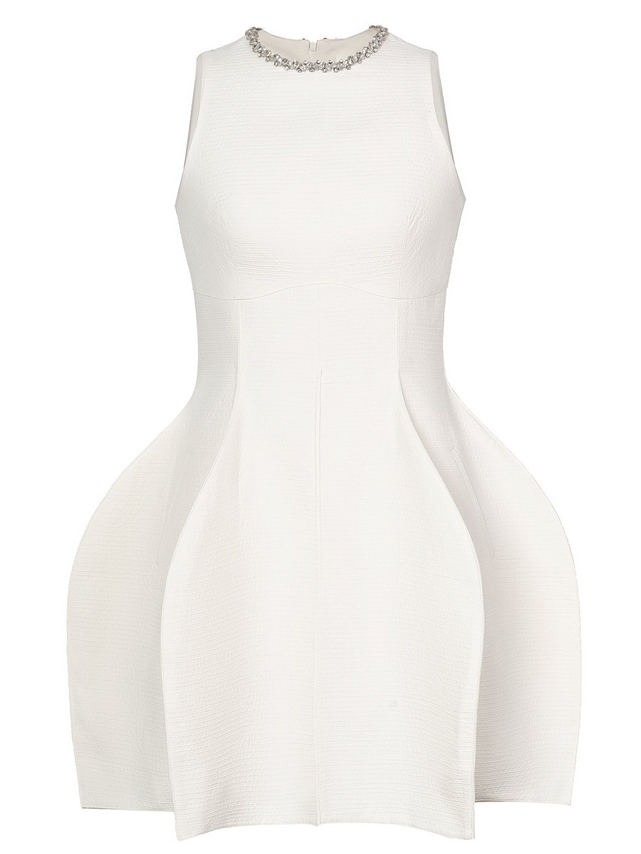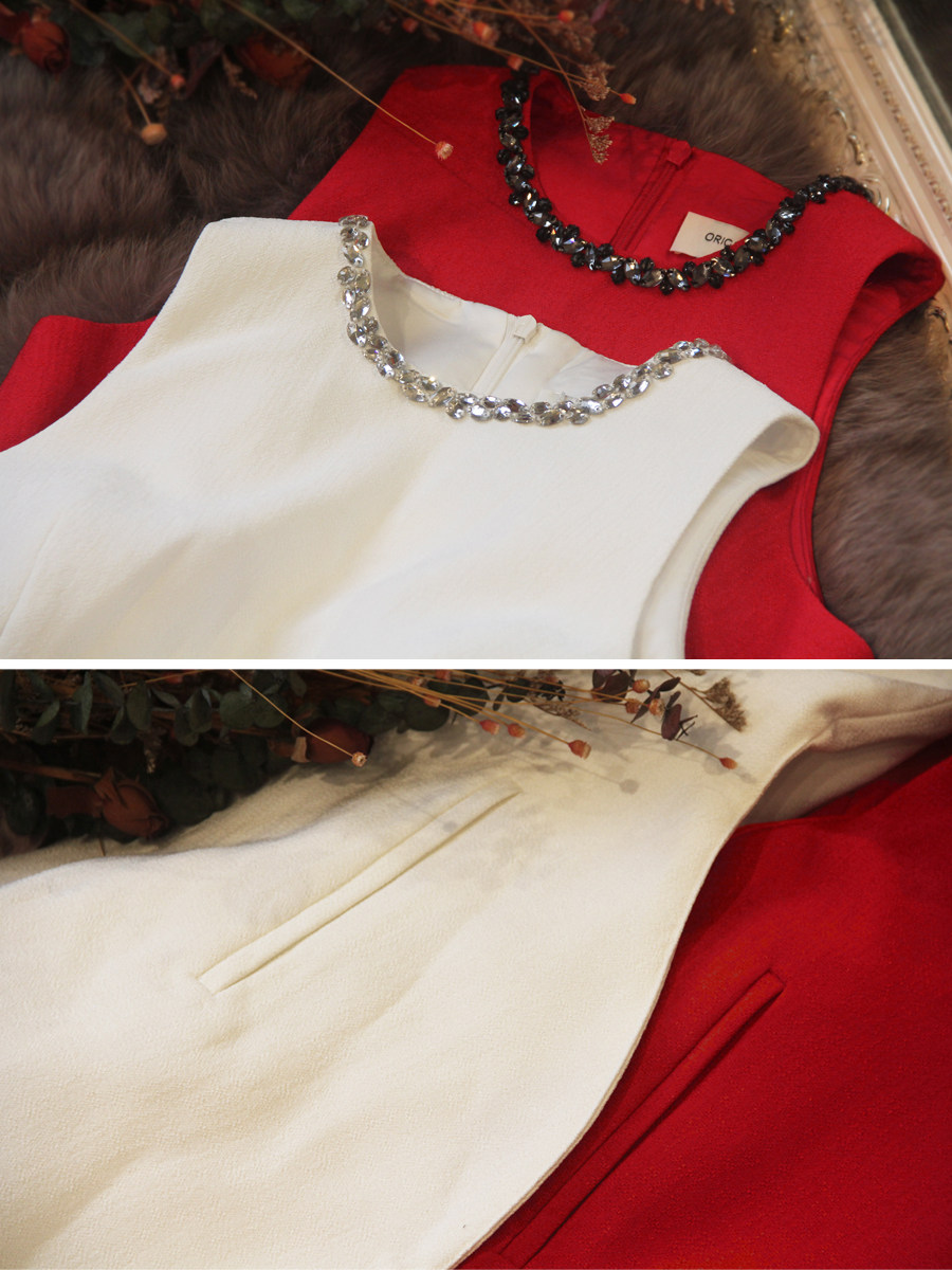 圆领无袖立体感小个子显瘦收腰蓬蓬大摆个性订钻红色小礼服连衣裙