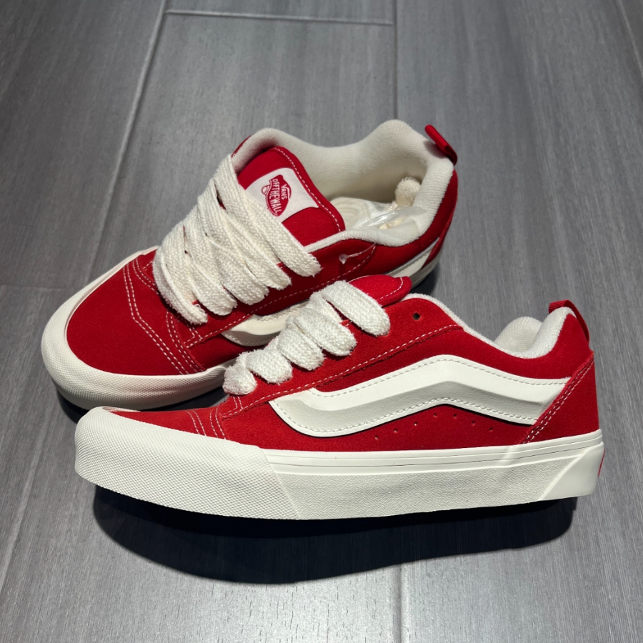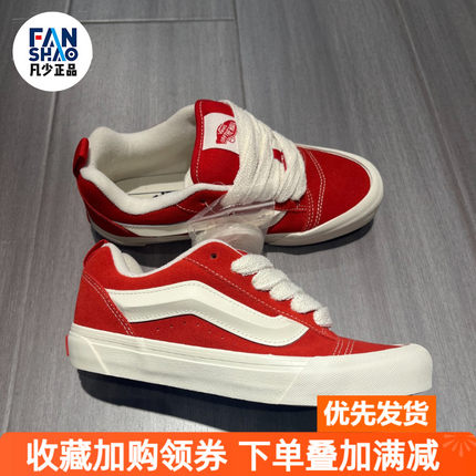 Vans织物牛剖层革潮流休闲防滑耐磨男女红色低帮板鞋VN000D75BOP
