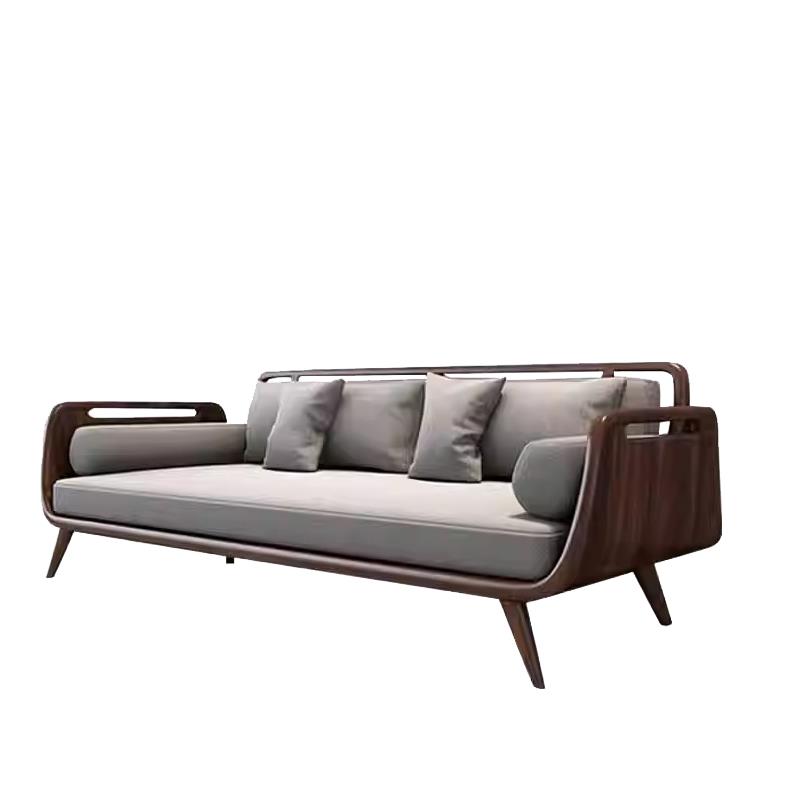 新中式胡桃木沙发高端实木沙发床轻奢现代简约布艺罗汉床家具新款